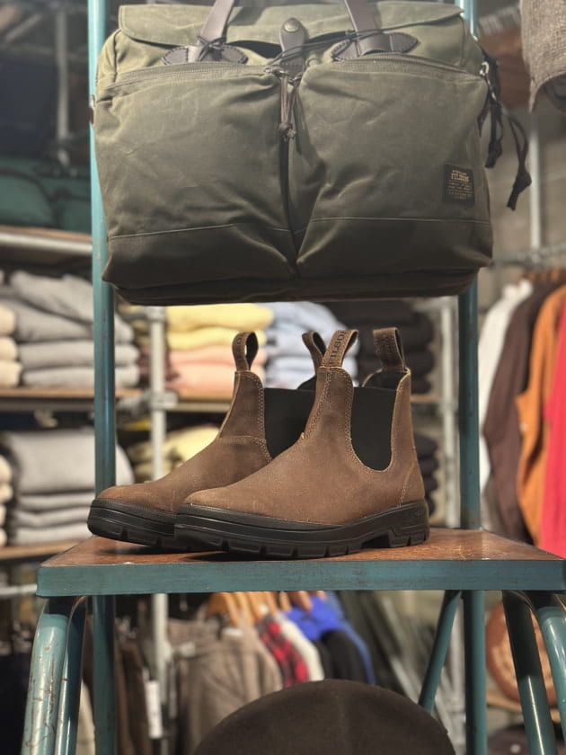 <FILSON>、<Blundstone>ともにリアルワーカーに向けたアイテムが多い印象ですが、某有名ブランドとコレクションを発表したり、数年前からストリートスタイルの足元に取り入れられるなど度々街中で見かけることのある両ブランド。