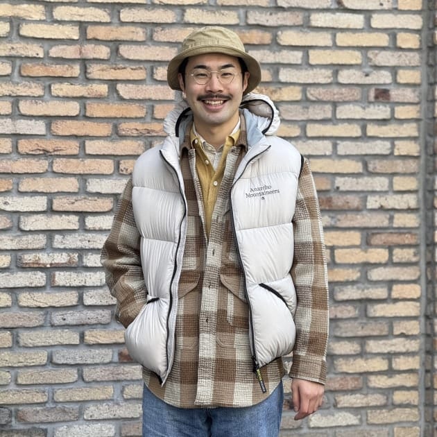 山小屋やロッジで働くオーナーをイメージしたスタイリングです。皆様もこの冬にタウンユースはもちろん、キャンプや登山のお供に如何でしょうか。