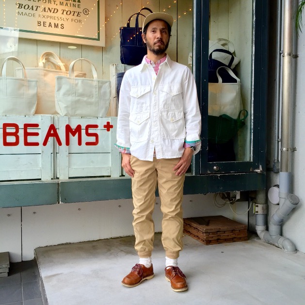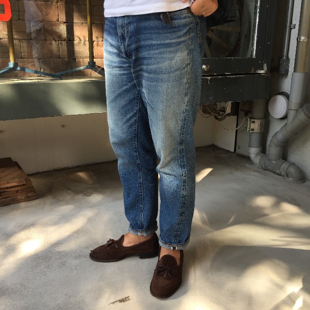 生地はインディゴロープ染色を施しているので洗いこむほど白に近い色に褪色します。