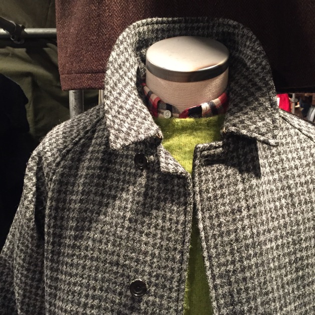 武骨さの残るフロント前立てには、ネコ目タイプのボタンを使用しており、生地とともにクラシックな佇まいを演出しています。