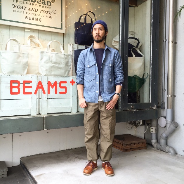 ワークシャツの首もとから見えるヘンリーネックが好きです。