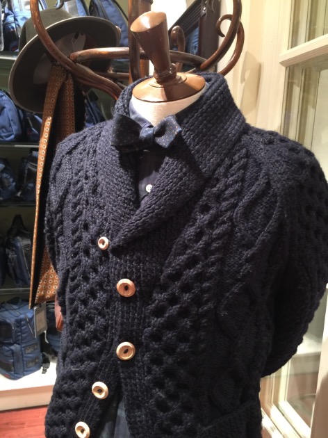 英国国内で紡績されたアラン糸を用いて、インバーアラン社に登録されているニッター(家庭でニットを編む職人!?)が1点1点ハンドメイドで編んでおります。機械編みでは表現できない人の手による温もりが感じられます。ハンドメイドならではのざっくりとした質感と美しい編み目のパターンは最大の魅力です!その中でも、本日は3a(ポロカラー)をご紹介します。