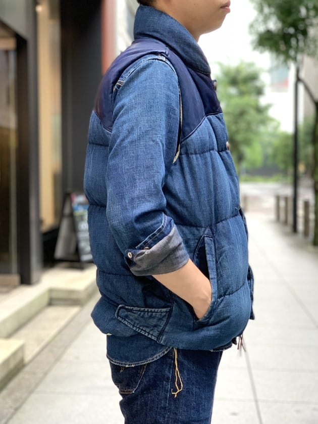 今時期から着用したくなる爽やかな印象の一着。私のオーダー最有力候補であり、どの生地もそうですがヴィンテージの雰囲気を漂わせ、古着屋に置いてあっても現行の物とは気付けないであろう加工技術、恐るべし。