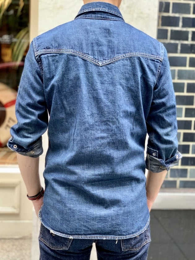 ウエイトがありガシッとした生地感が特徴的な一着。ウエスタンシャツとしての着用は勿論、羽織ものとしてインナーにシャツを合わせてシャツonシャツのコーディネートが非常にクールではないかと思っております。