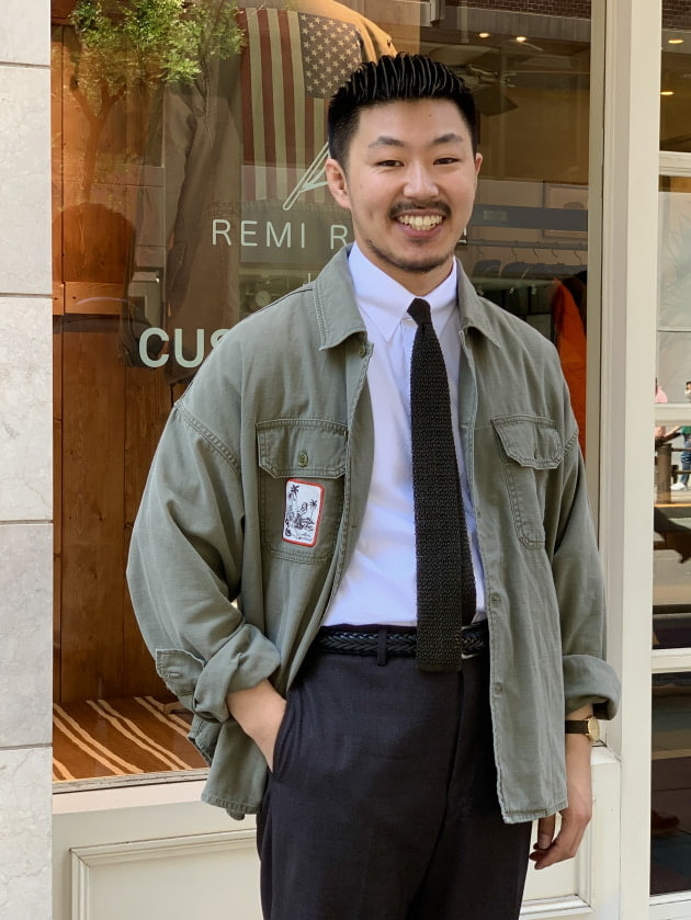 真面目なアイテムを"コートに着られてしまっている"お下がりの感じで着用したく、40をチョイス。