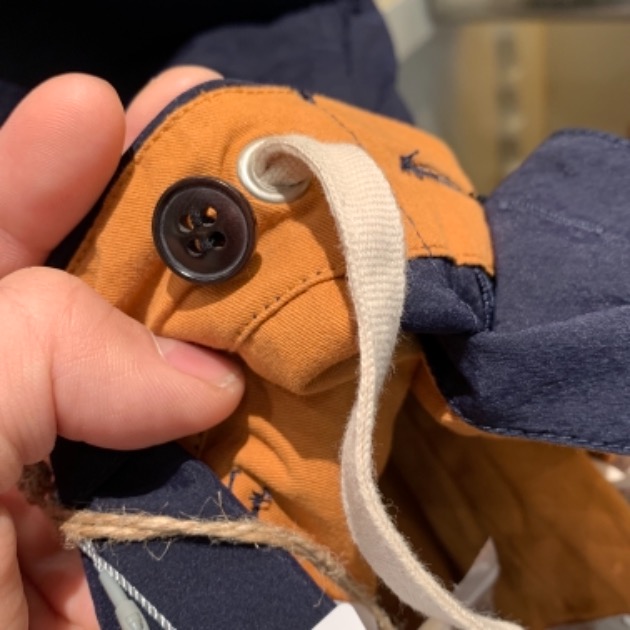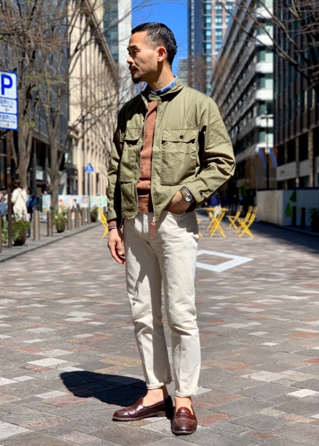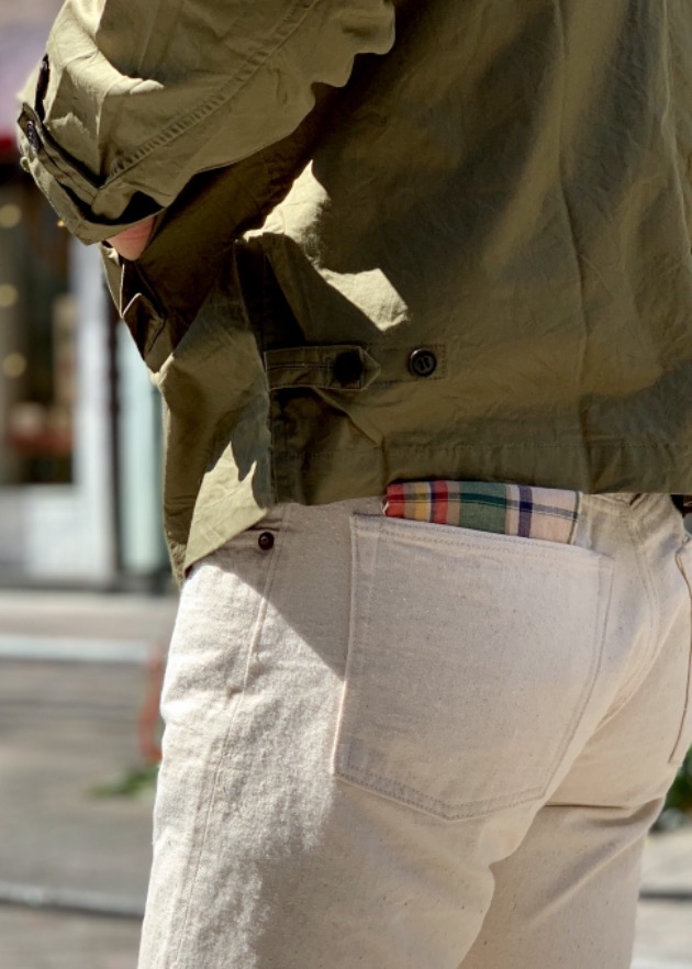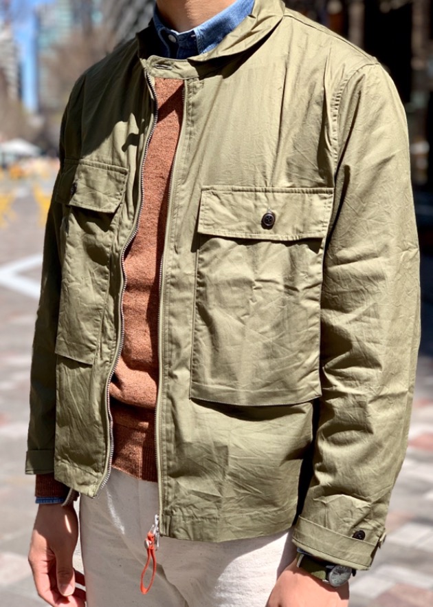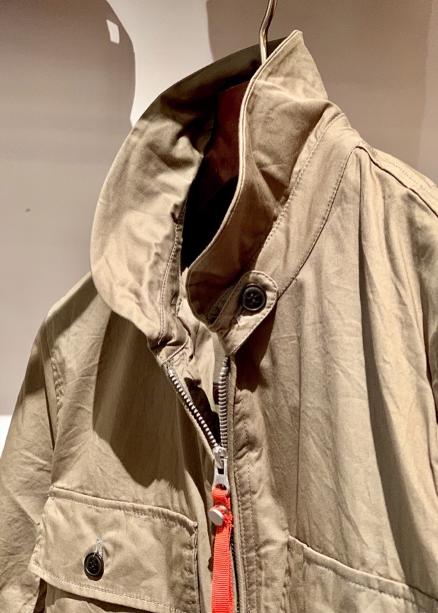 胸・腰のフラップポケットはスナップボタン仕様になっており、フロントの引き手はオレンジのパーツが付いていたりとアレンジも程良く、¥28,600-(税込)と気が利いたプライスも魅力です。