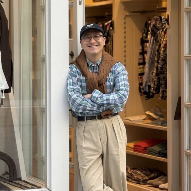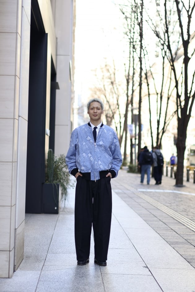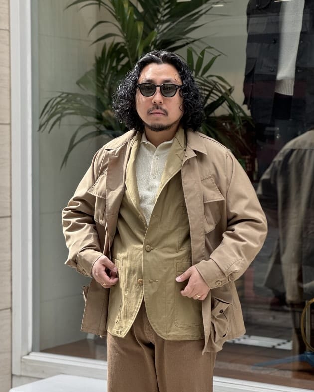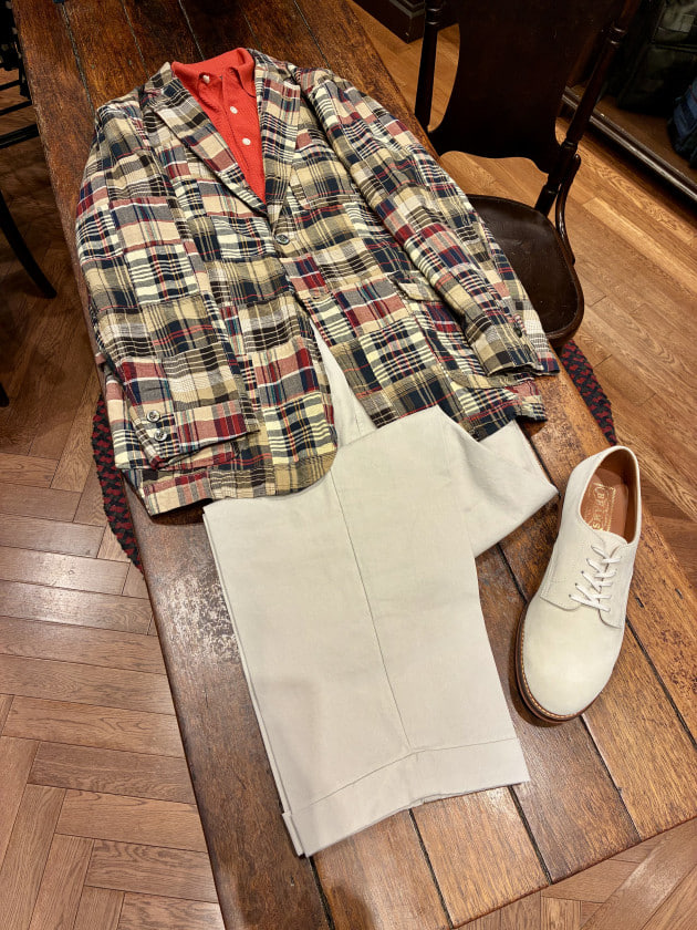 腰回りの丸みと程よいテーパードによるジャケットとの繋がりの良さがお気に入りです。ホワイトバックと合わせることで春夏感は満載に。