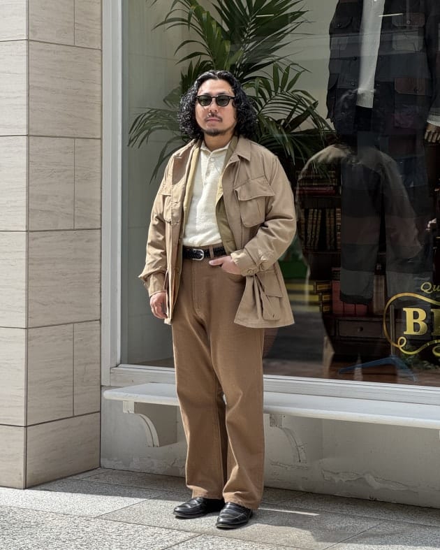 満遍なく色落ちした風合いからか、ラギットさはなくキレイめな雰囲気。