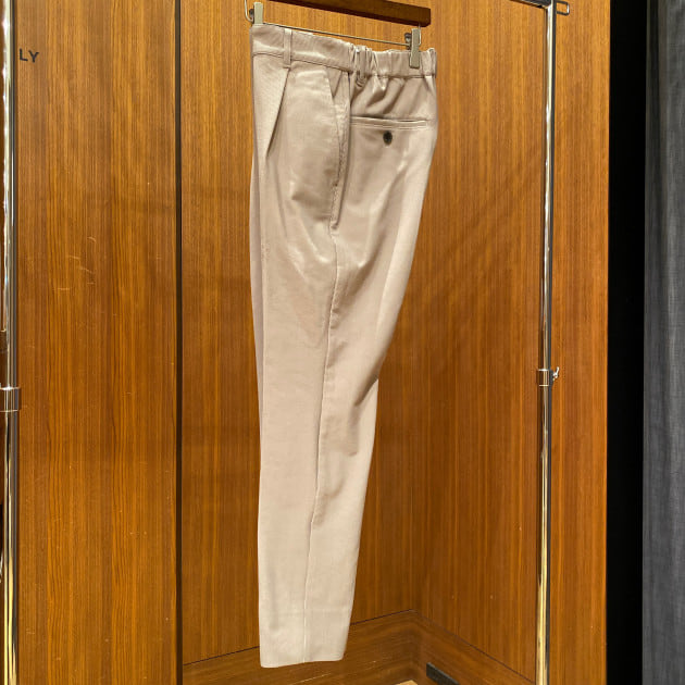 トラウザースは、テーパードシルエットで、上品なシルエットです。