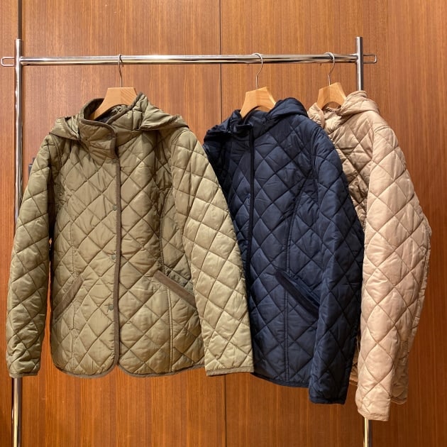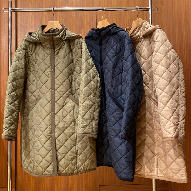 ダイヤキルトのコートは、軽くて暖かく、インナー調整で、ロングシーズン着用可能ですので、とてもおすすめのアウターでございます。