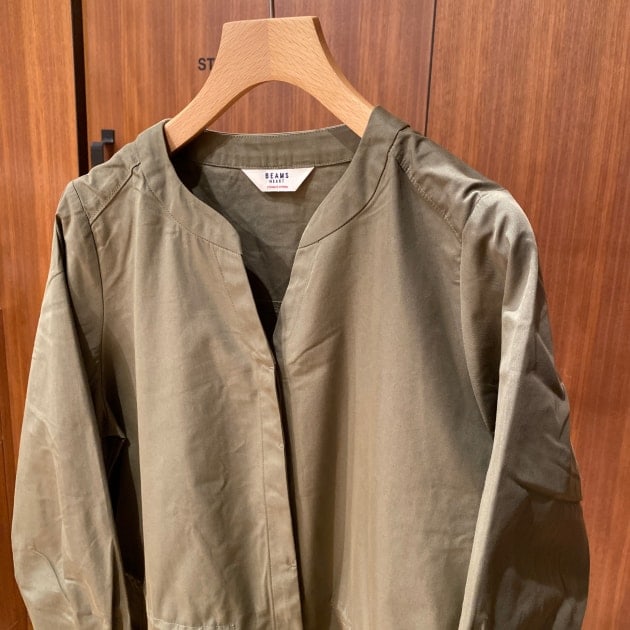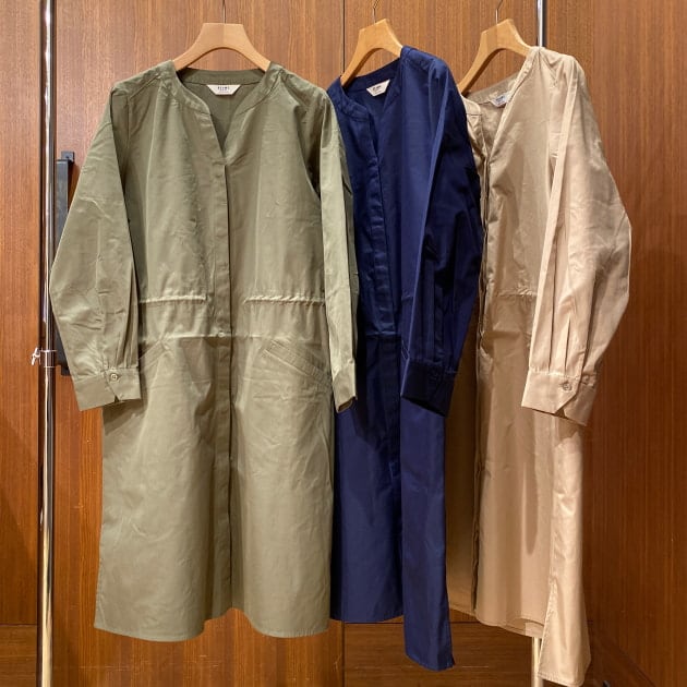 本日は、ワンピースとしても羽織りとしてもコーディネート頂けるノーカラーワンピースをご紹介いたします。