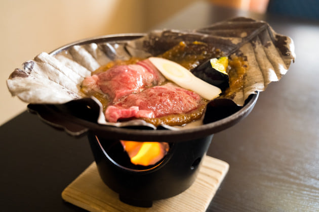 こちらは、福島県牛の朴葉焼きですね。