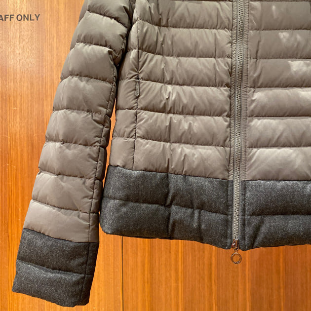 ダブルジップなのは、インナーのレイヤードをチラ見せしたり、座る時にも、裾が引っかからないので、嬉しい仕様でございますね。
