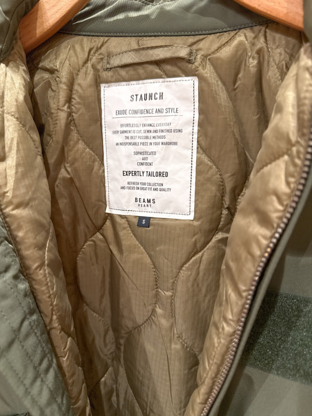 前立ては比翼になり、スナップボタンとジップのダブルロック仕様で、寒さに応じて、開閉するのはもちろん、レイヤーするときにも、スナップボタンとジップを駆使して、レイヤーコーデをして頂けます。