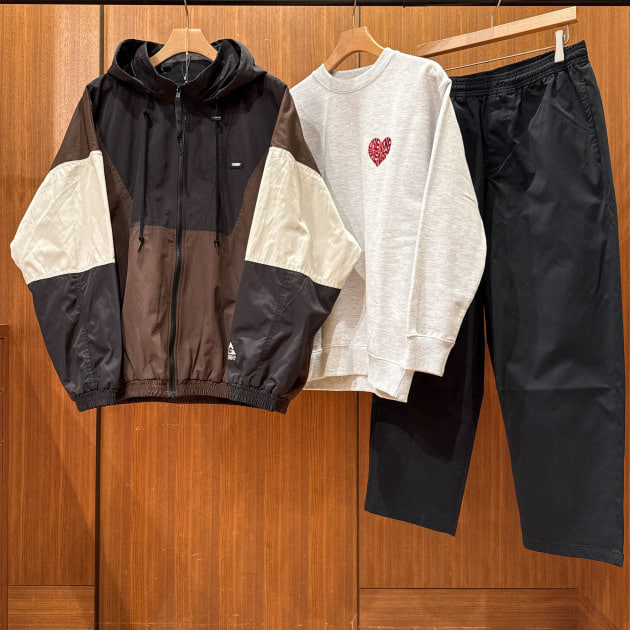 ボトムスは、CPOシャツと同素材のポリエステルコーデュロイ素材を使ったバルーンシルエットのイージーパンツになっております。