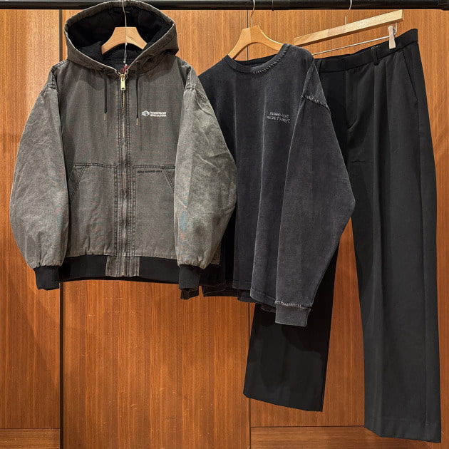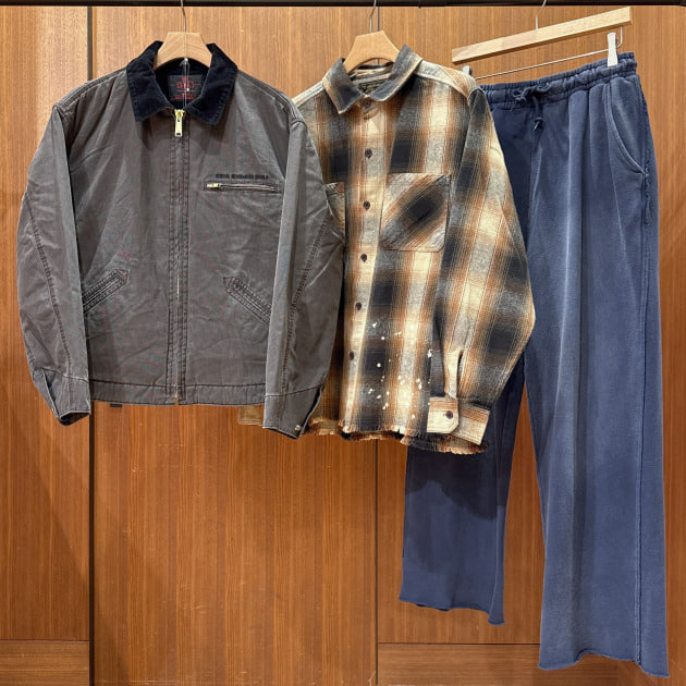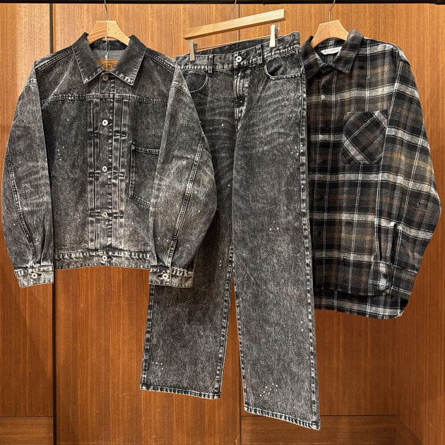 ブラックはウォッシュド加工、ダークブラウンは生地加工とウォッシュド加工を施し、リアルな質感に仕上がっております。