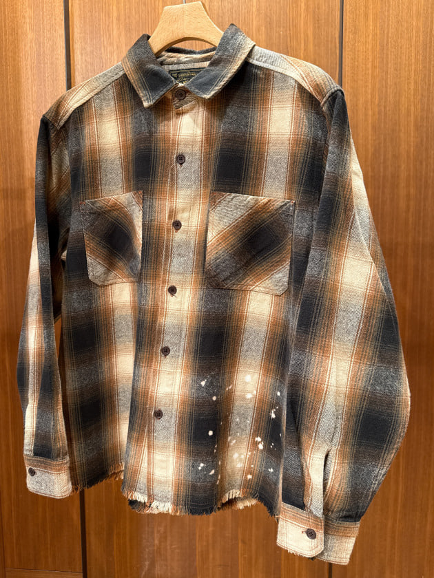 フラップ付きの胸ポケットは、CPOシャツならではのディテールです。
