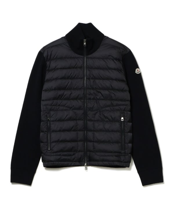 バイカージャケットをベースに、軽量のナイロンと伸縮性に優れたニットのコンビネーションで作られたダウンカーディガン!