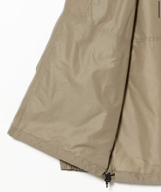 フロント両側にジップ付きのポケット、裾部分には着丈を調整できるドローコードが付いているののでスタイリングによってシルエットの調整ができるのも嬉しいポイントです!