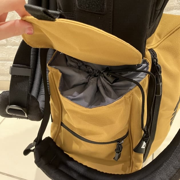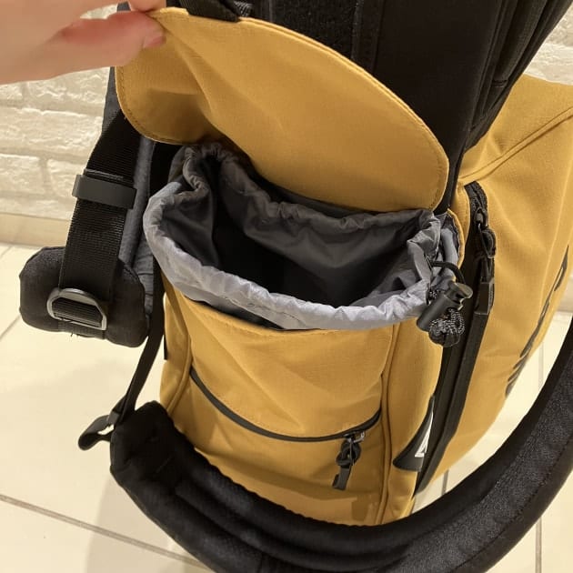 フロントポケットはマグネット仕様の蓋をめくると巾着になっているので、軽い雨などからしっかり中身をカバーしてくれます♪