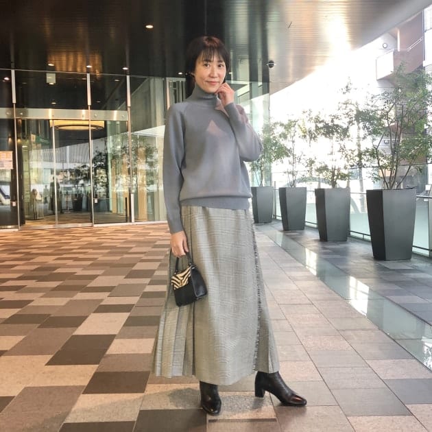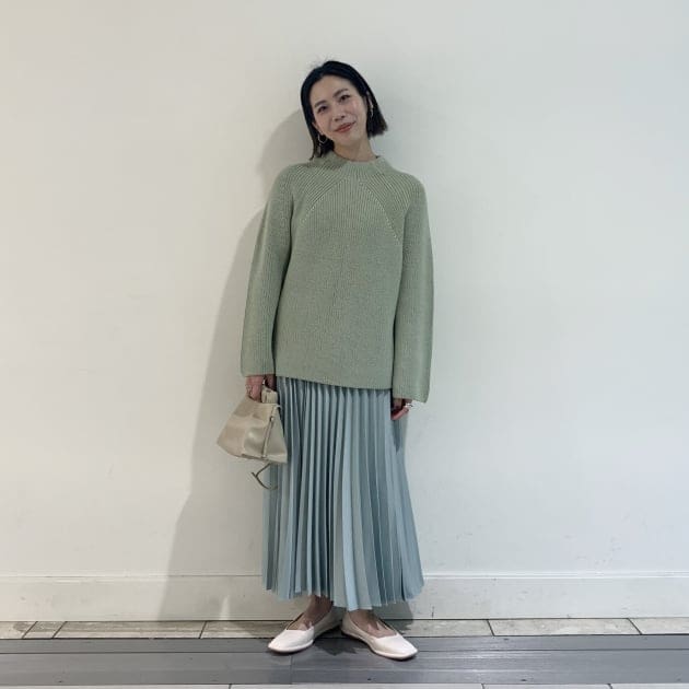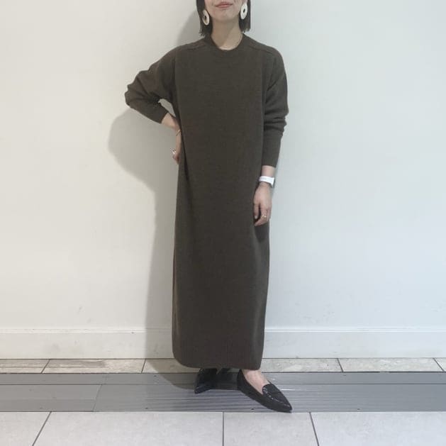 staff:neneが着用しているタートルネット ニットチュニックも同素材で作られております。