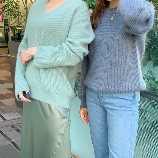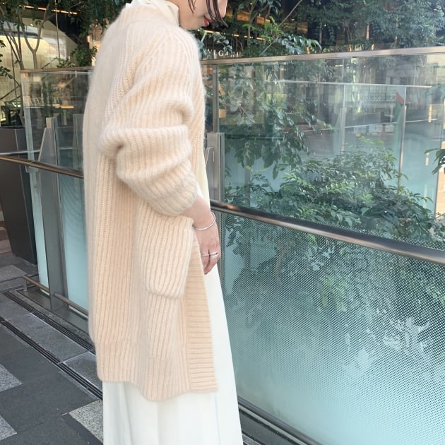 キッドモヘア(カシミヤの柔らかさとモヘアの強さがある最高級品の毛糸)とベビーアルパカならではの、起毛感とローゲージながら軽く柔らかい肌触りが魅力です。