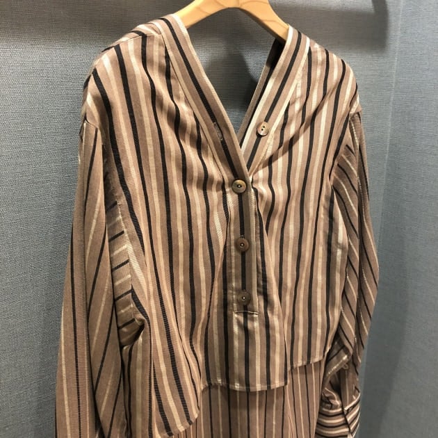 縦糸にキュプラ、緯糸にリサイクルシルクが使用され、ナチュラルなストライプがとても美しいです…