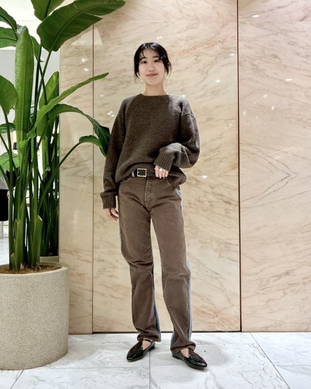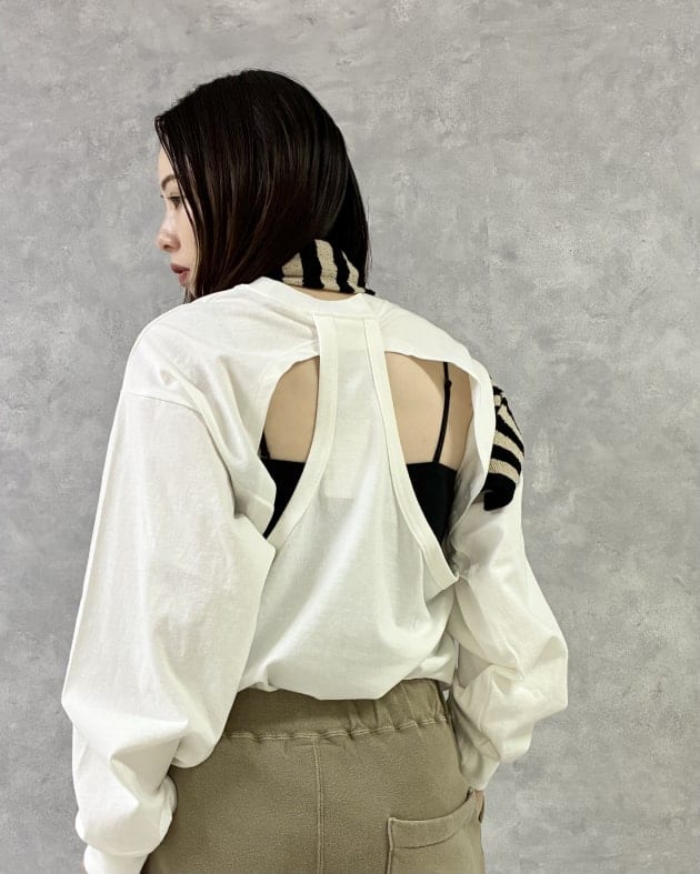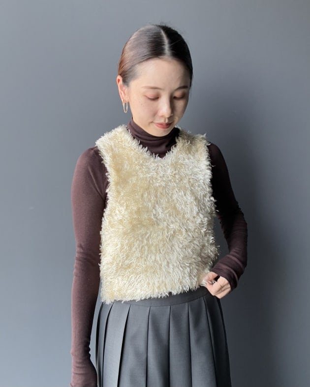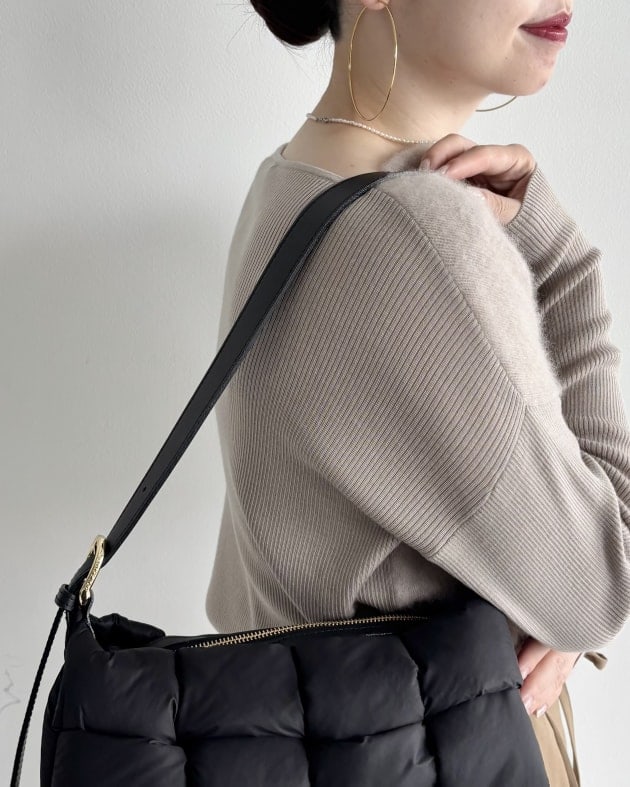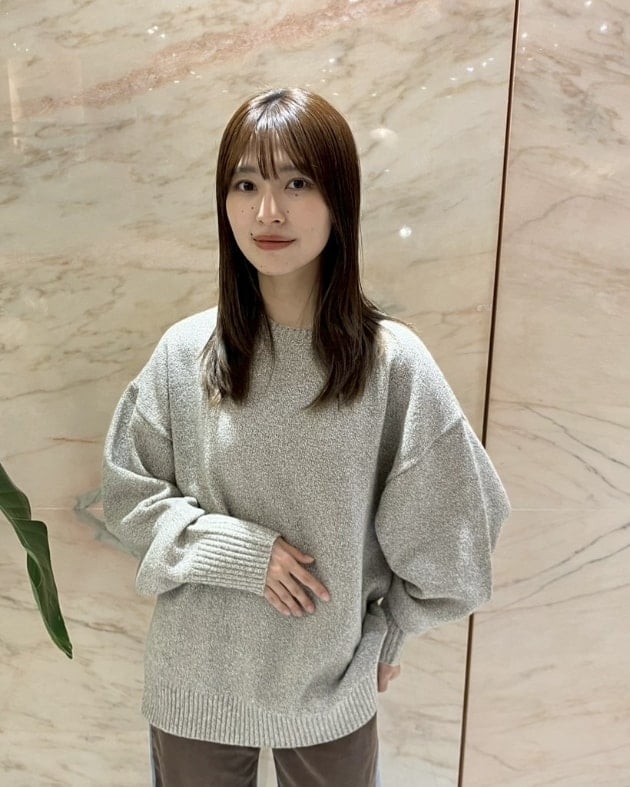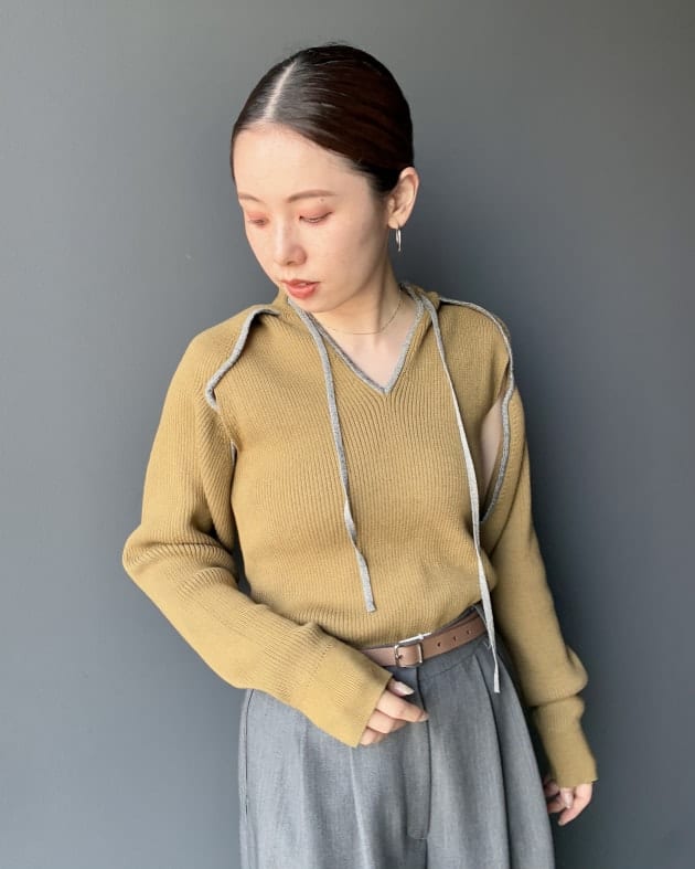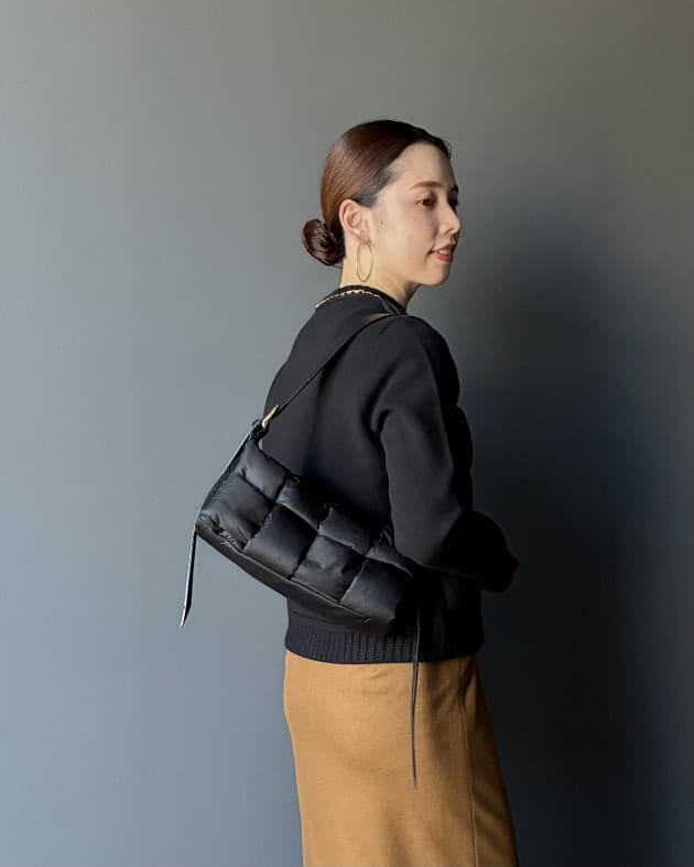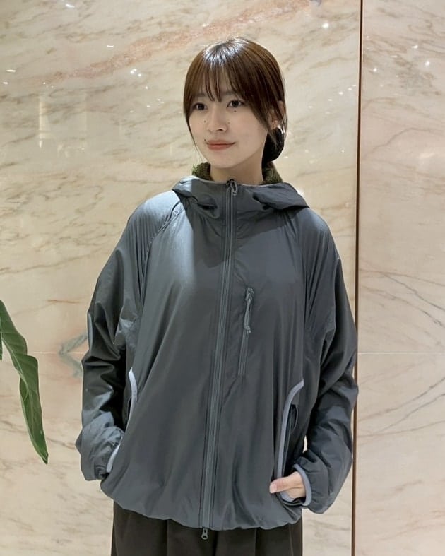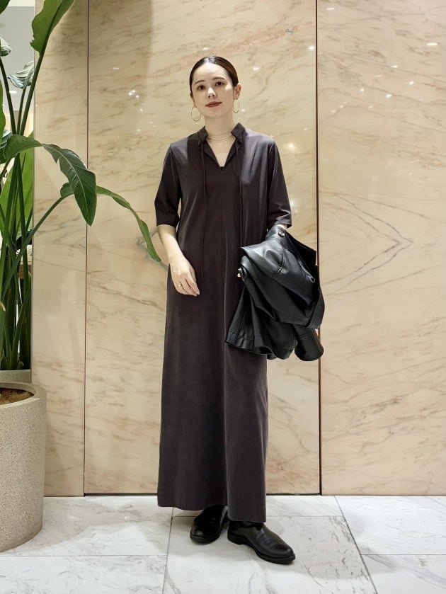 staff Ishihara が着用するのは、カシミヤのアームウォーマー。ニット帽や三角ストールなどと組み合わせて、冬らしいコーディネートをお楽しみいただけます。