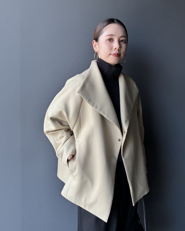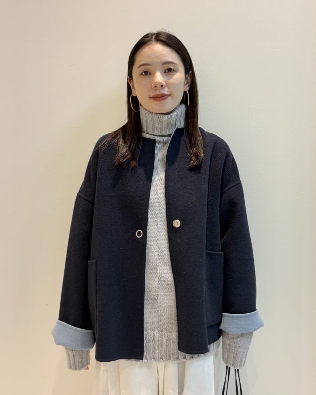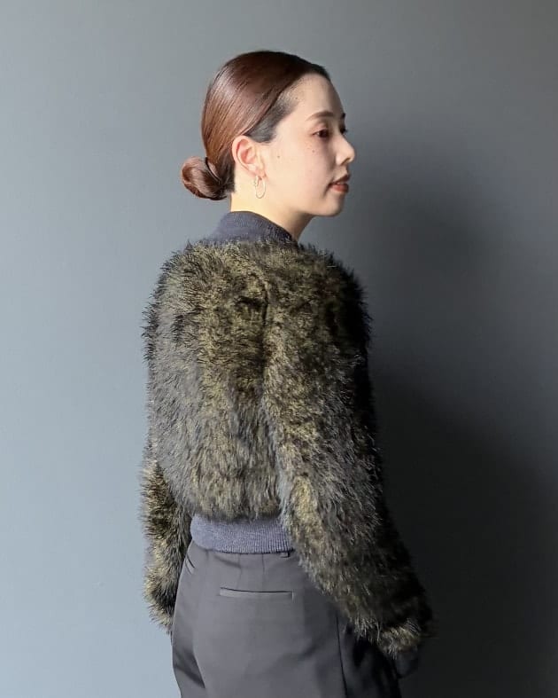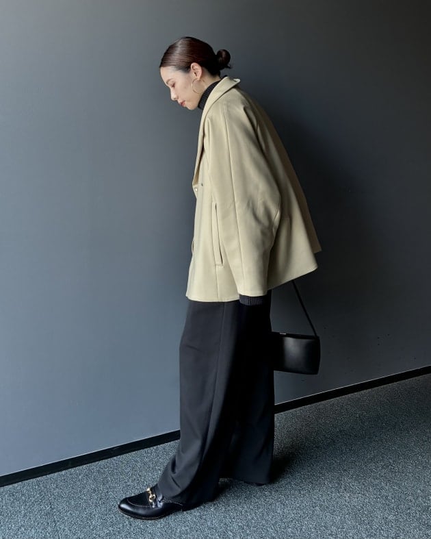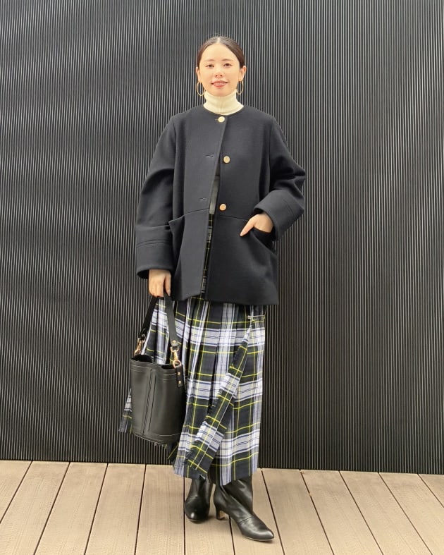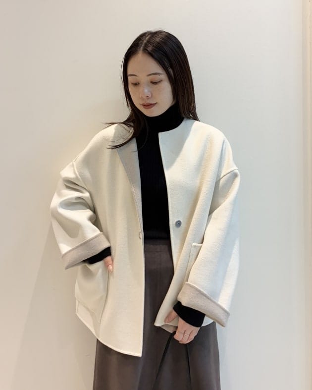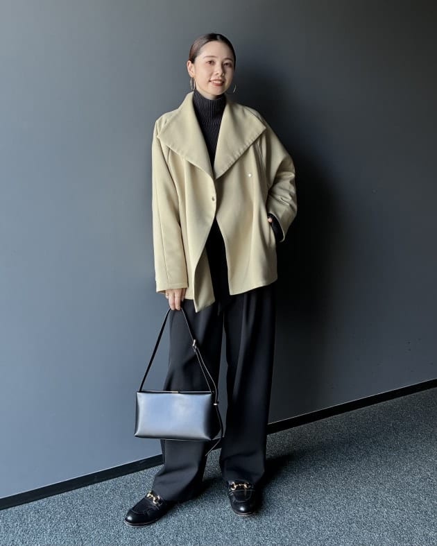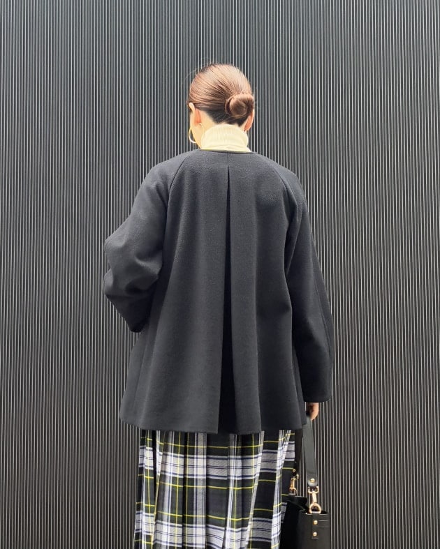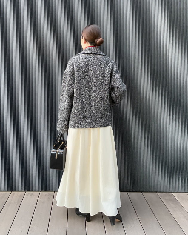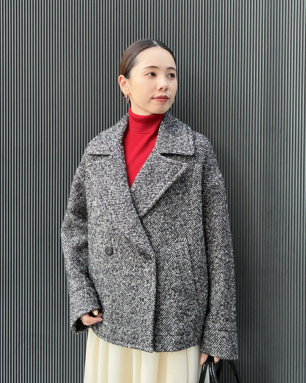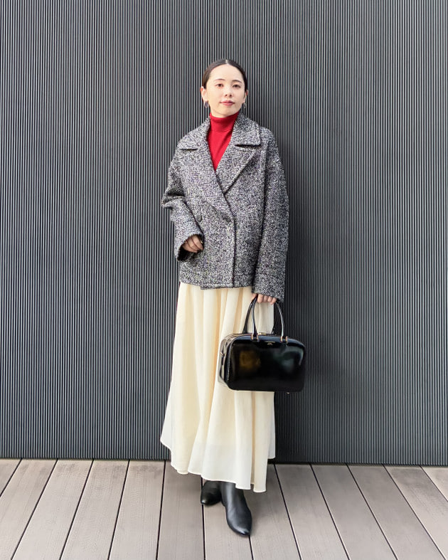 お洋服が暗くなりがちな冬ですが、色物をさっと羽織るだけで洗練された印象になります♩
