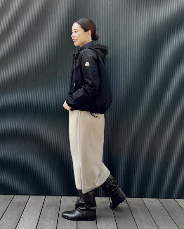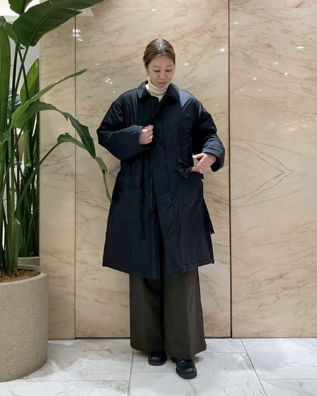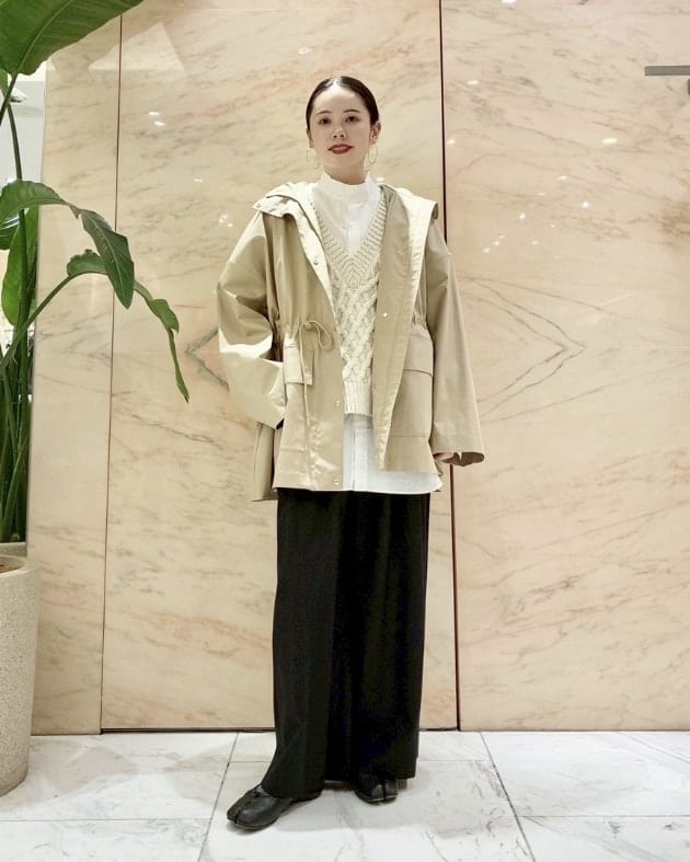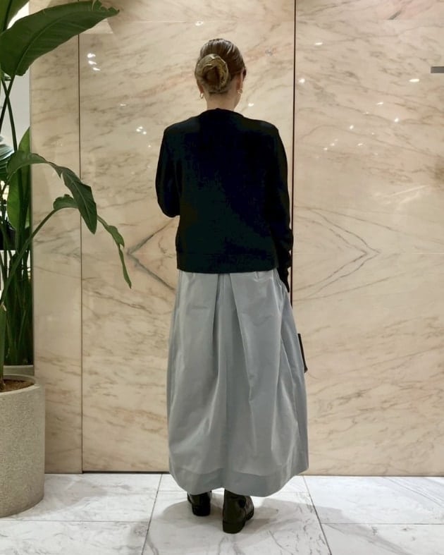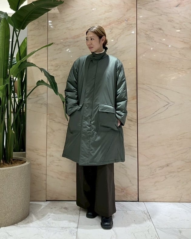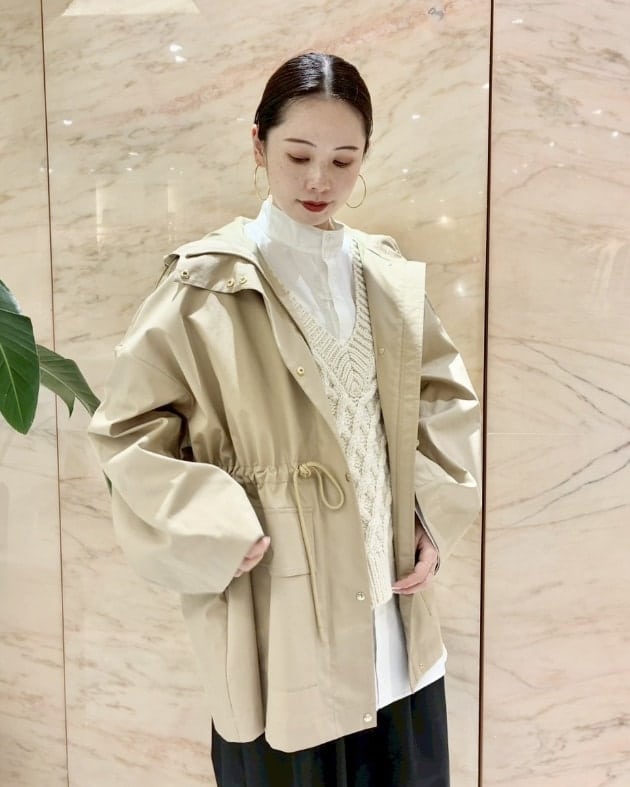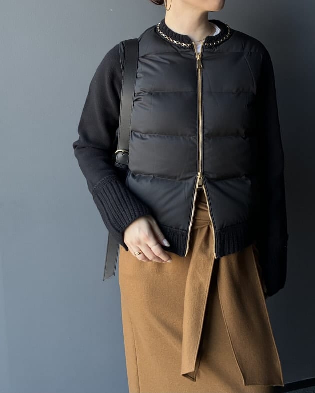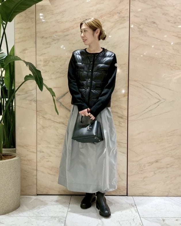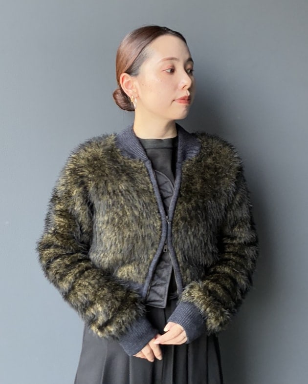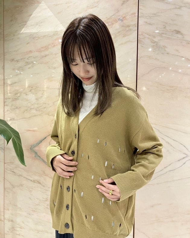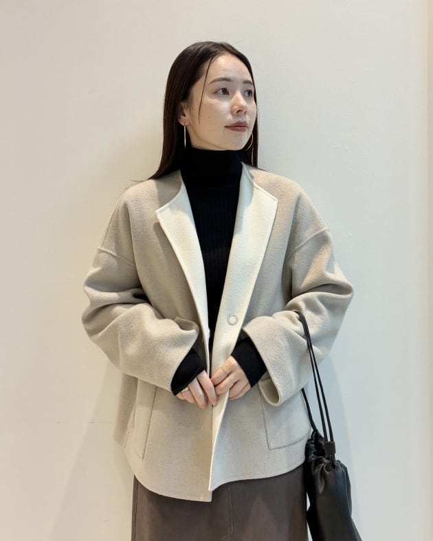 お洋服が暗くなりがちな冬ですが、色物をさっと羽織るだけで洗練された印象になります♩
