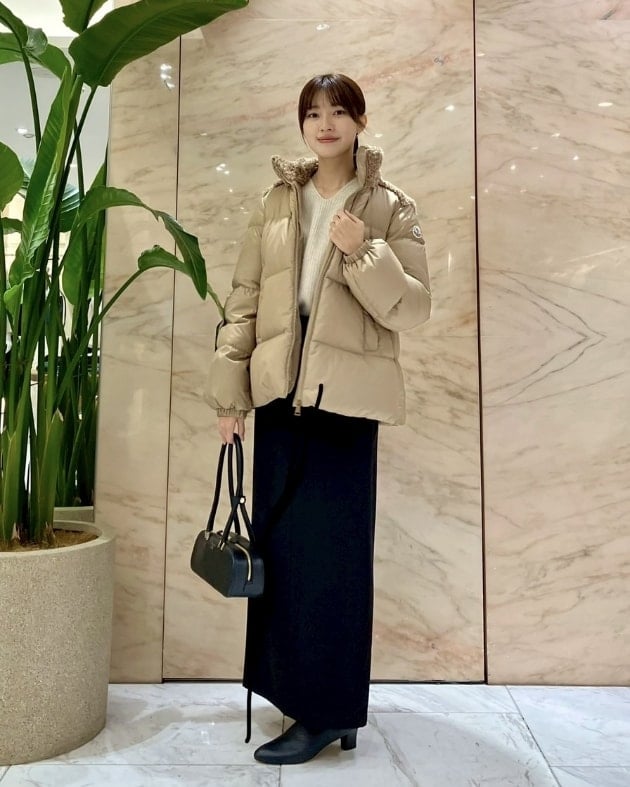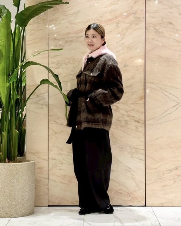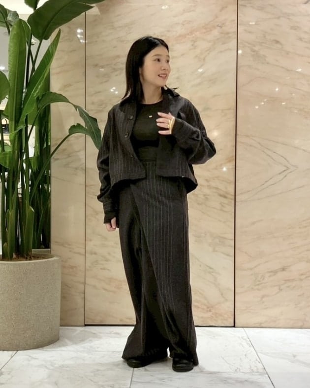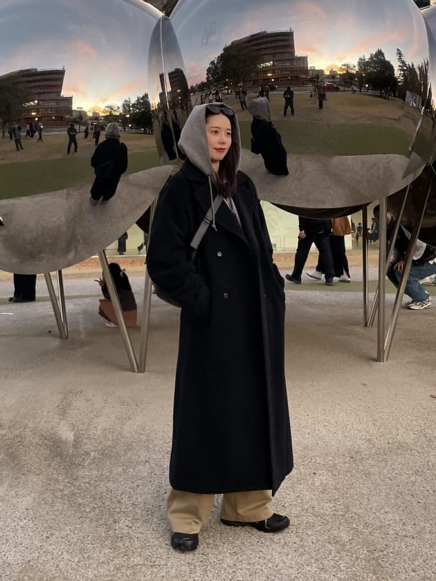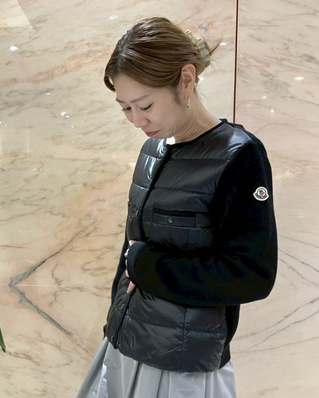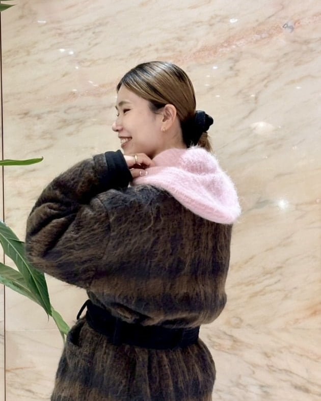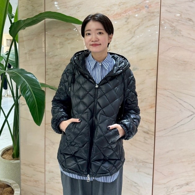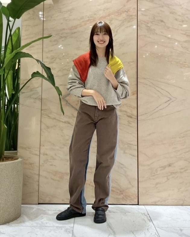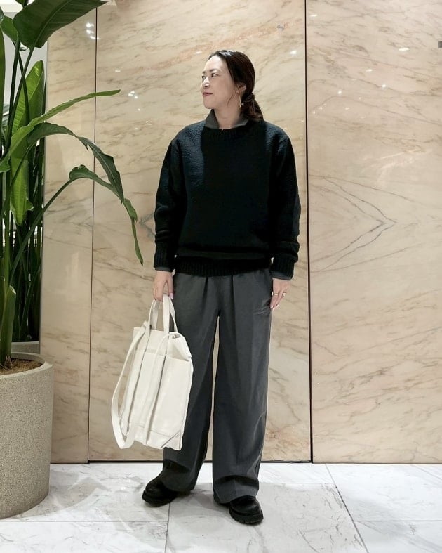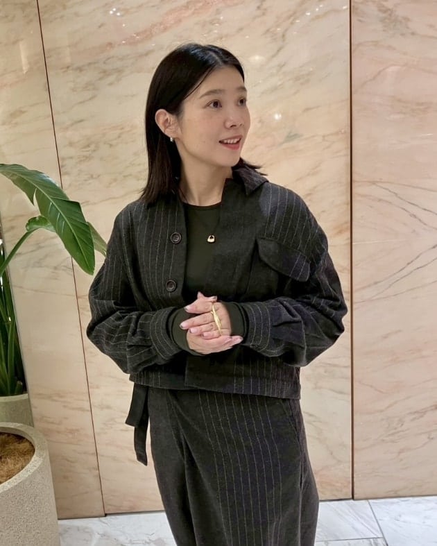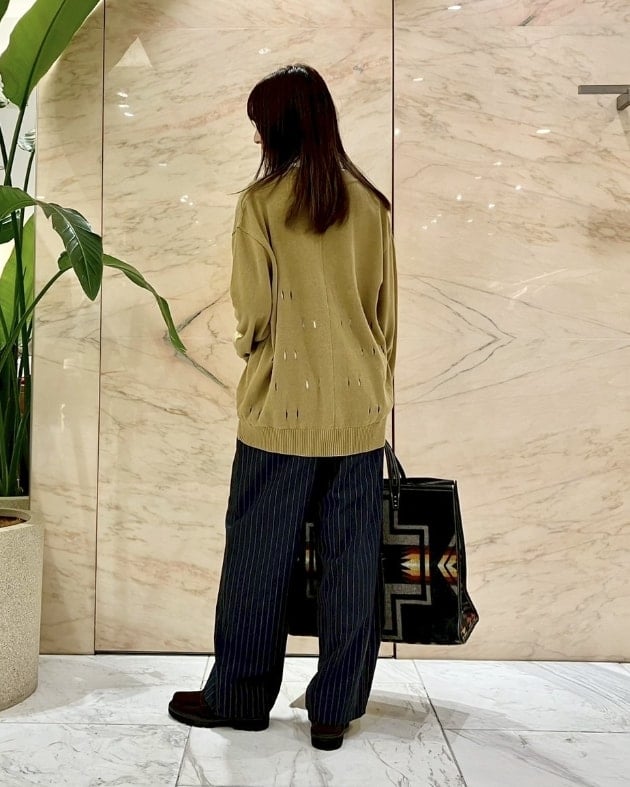 お洋服が暗くなりがちな冬ですが、色物をさっと羽織るだけで洗練された印象になります♩