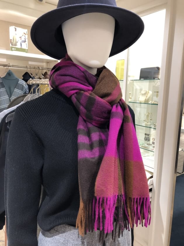 こちらはJoshua Ellisのストールです。大判で柄も大きいので、コーディネートの中心になります。