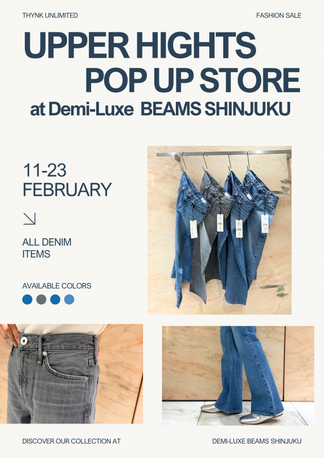 〈upper hights〉POP UP STOREは、デミルクスビームス 新宿では2月11日から2月23日までの期間限定開催となっております!