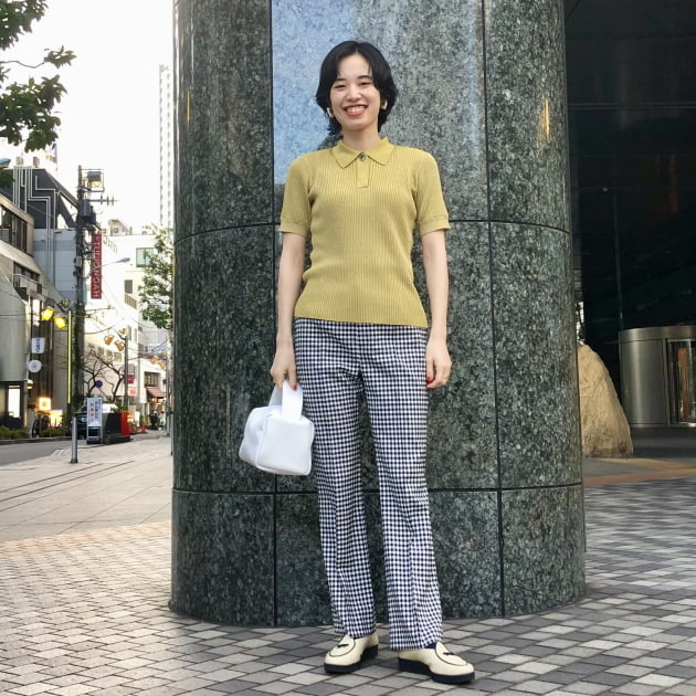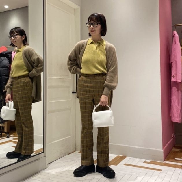 イエローのカーディガンは程よいビビット感で、全体に洒落っ気を出してくれる優秀アイテム!個人的にはとても好きです。
