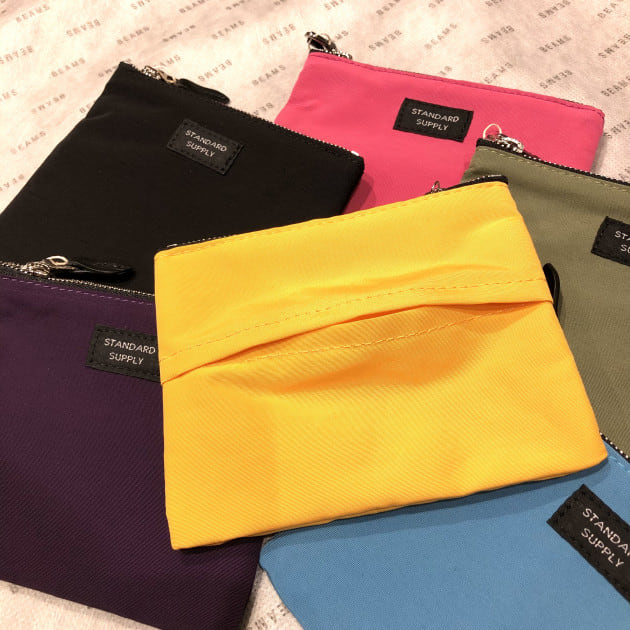 名前の通り「ティッシュポーチ」ですが、裏面が口の開いたティッシュ入れでファスナー部分は小物入れといった2層構造。個人的にはパスケースやコインケースとしてもお勧めです。