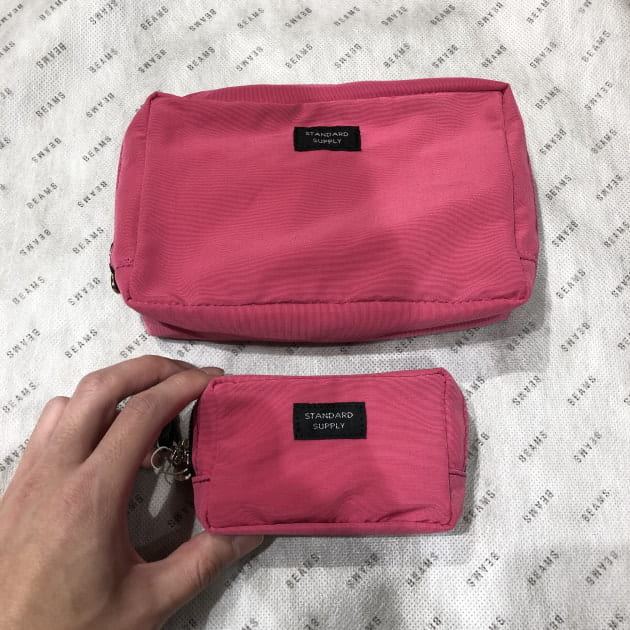 先程のSサイズよりも大きいLサイズのスクエアポーチ。レディーススタッフがコスメケースとして使用しているのをちらほら見かけます。