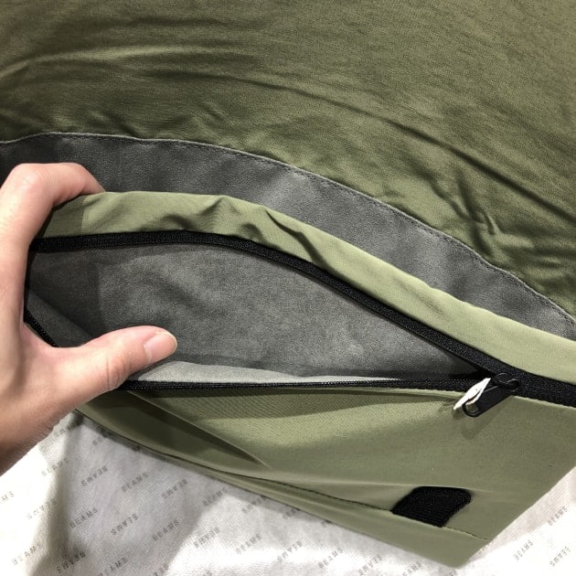 シルエットが枕に似ているという事から名付けられたピローポーチ。充電器や歯ブラシを入れたりするのに最適なサイズですね。ファスナーには滑りの良さで定評のあるYKKのEXCELLA(エクセラ)が使用されております。