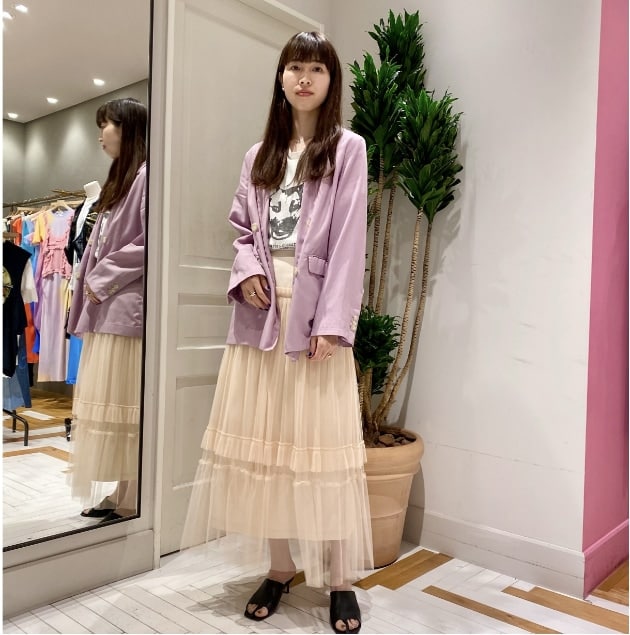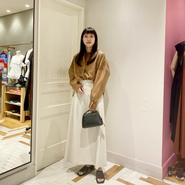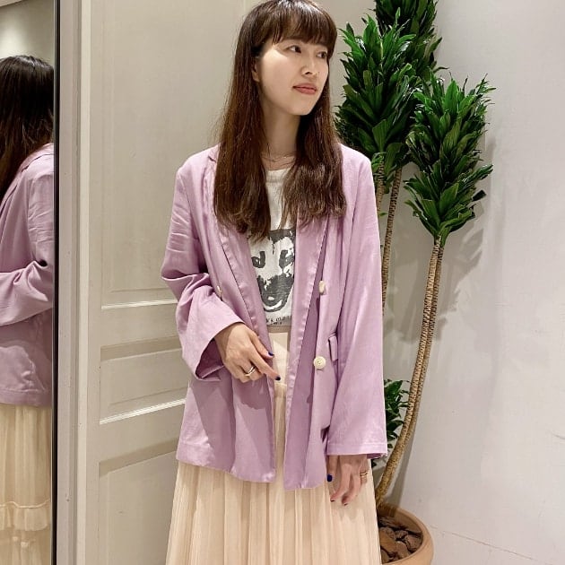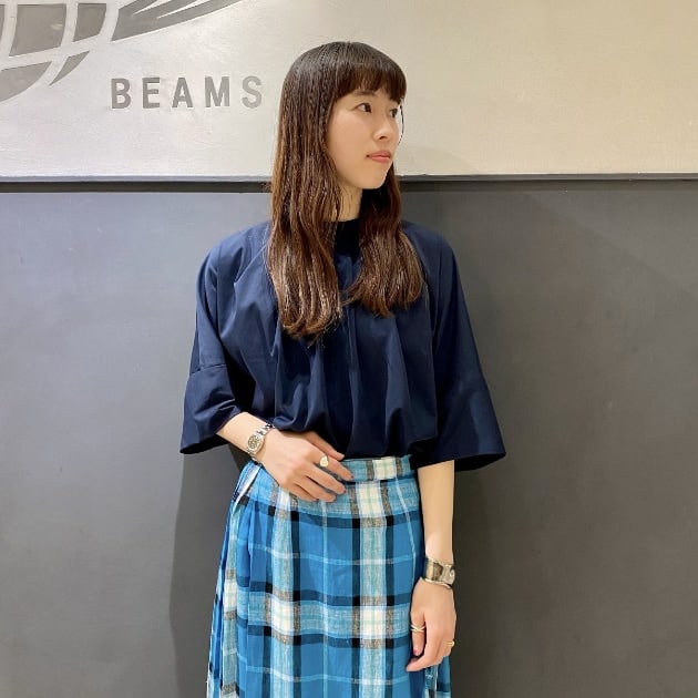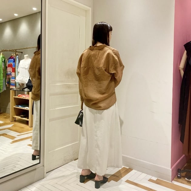 襟が大きめで、首もとのボタンを開けて抜いてきてもかわいいですよ♡