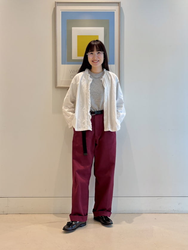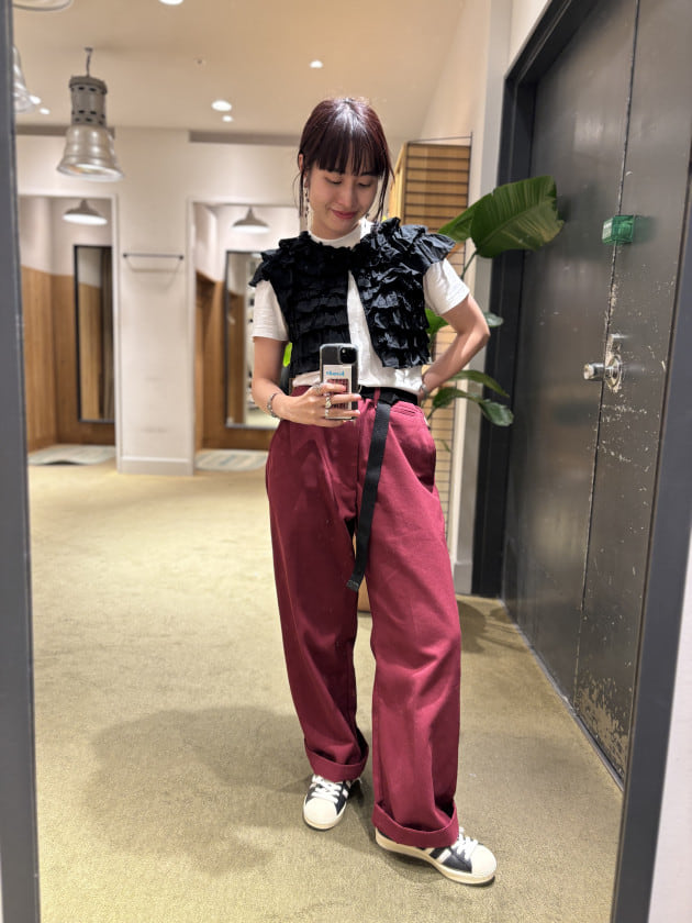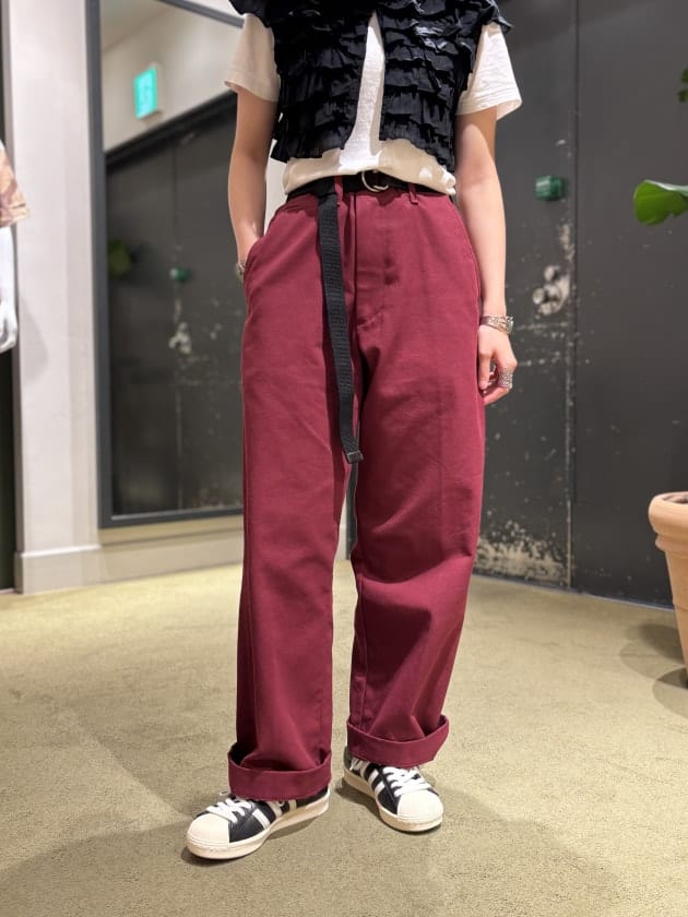 バーガンディのパンツ、めちゃくちゃいいです。