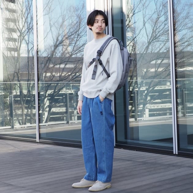 毎シーズン人気の〈GRAMICCI × B:MING by BEAMS〉別注デニムに足元は〈 clarks 〉のデザートブーツ。
