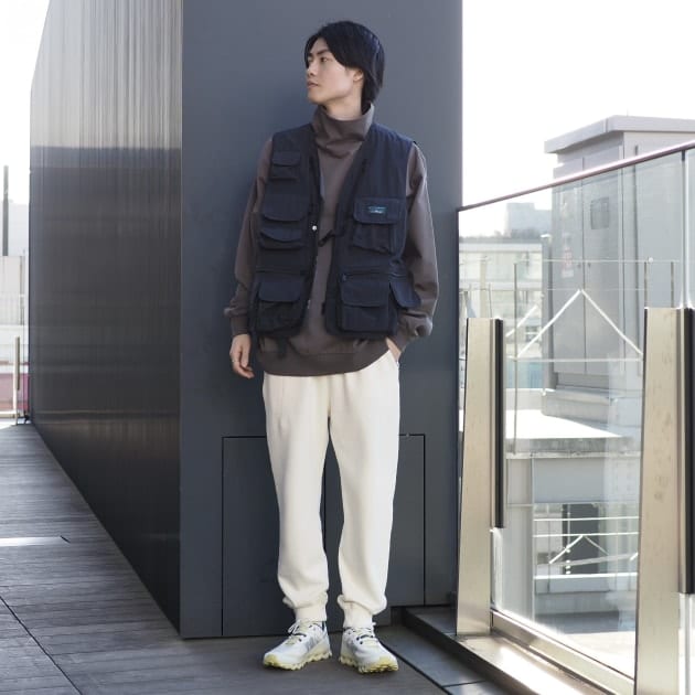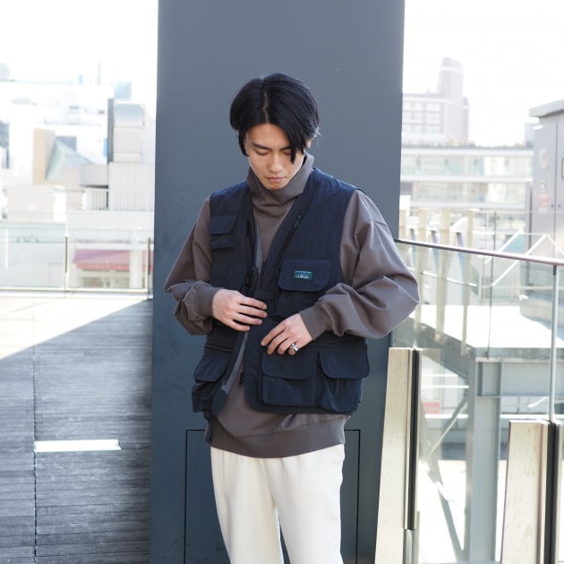 フィッシングベストを合わせたアーバンアウトドアスタイル!