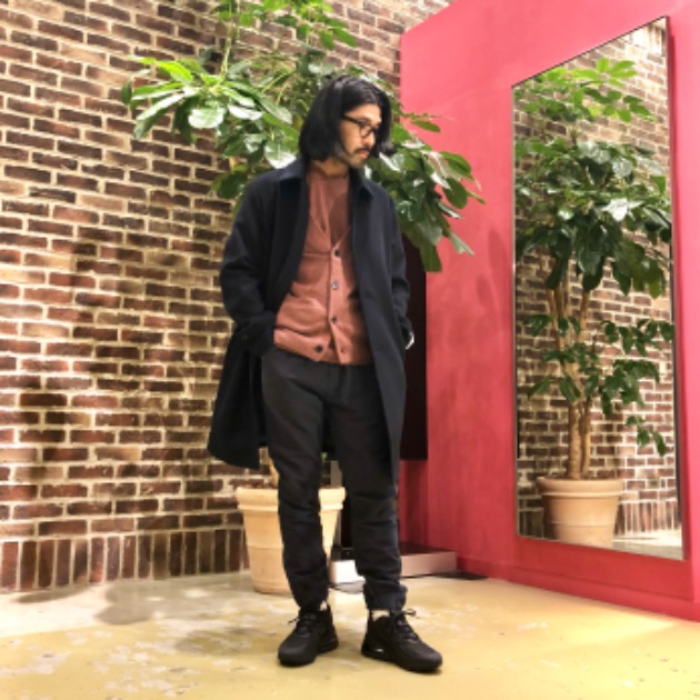 明るめの配色の為、どこかに暗めのアイテムを入れることでスタイリング全体が絞まります。