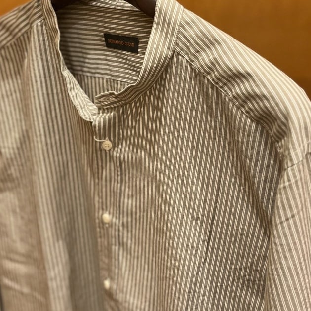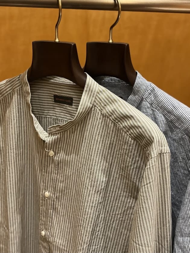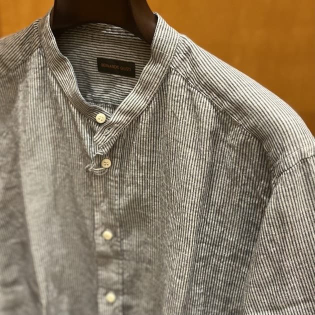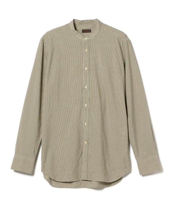 Placide / 別注 リネンコットン ストライプ バンドカラーシャツ