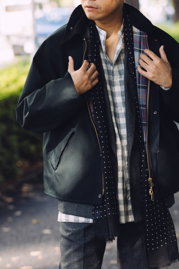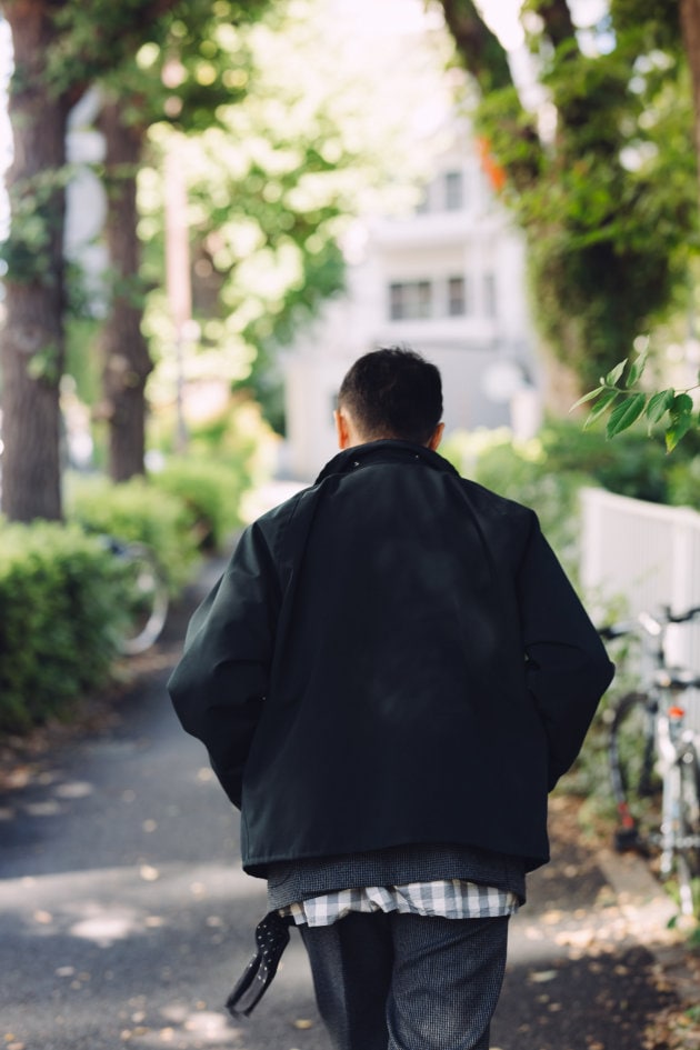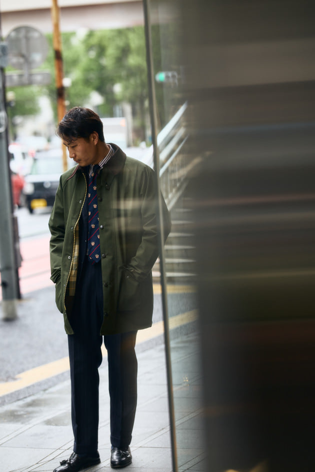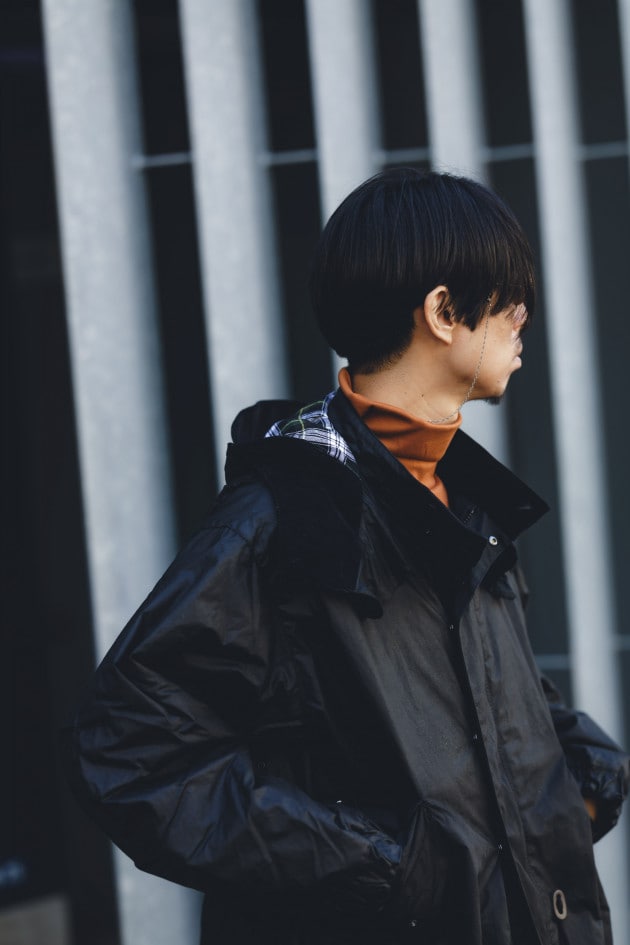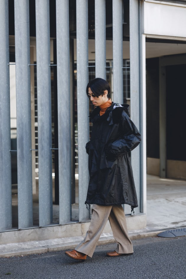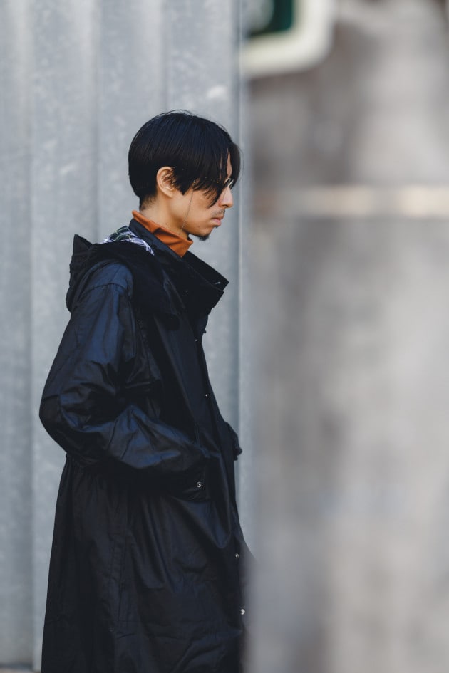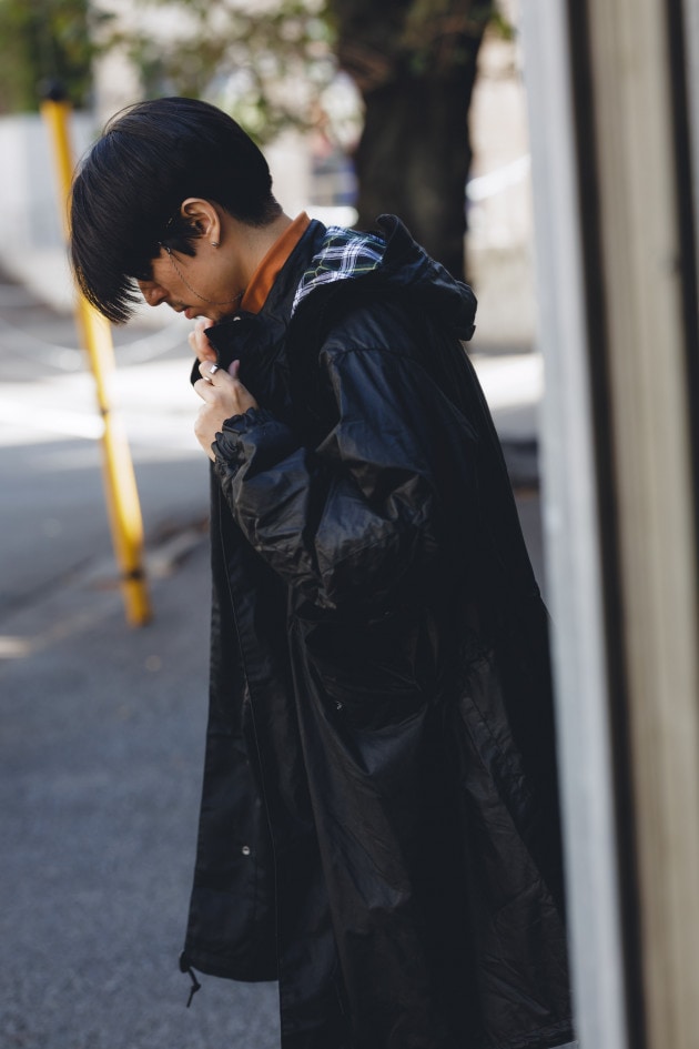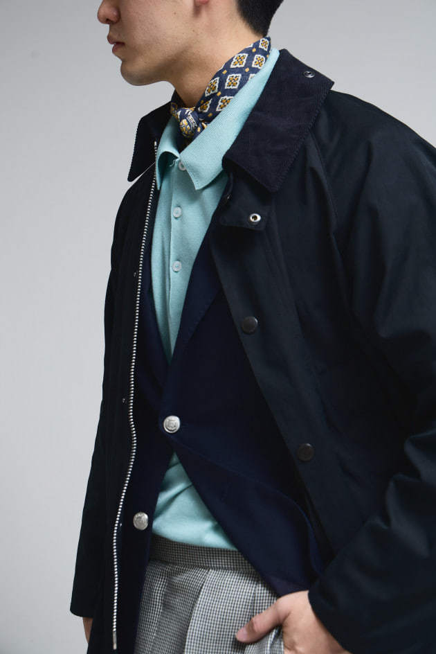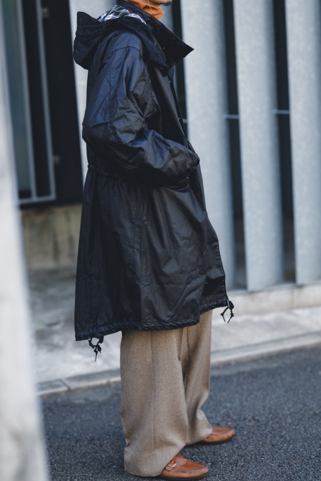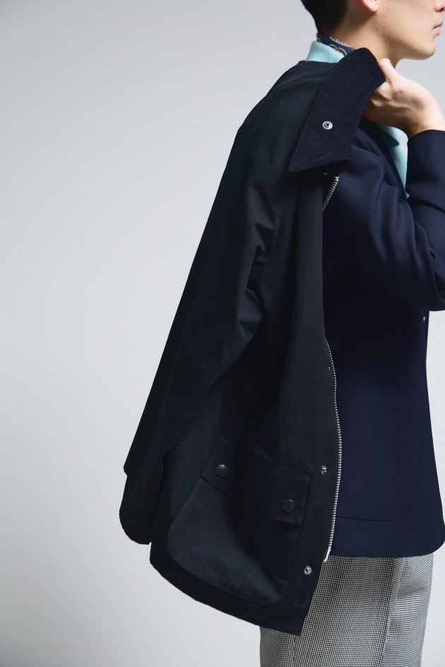 こちらは秋冬シーズンに展開していたアイテムですが、2レイヤーという機能的素材を使用しており、春秋にも問題なく着用可能です。特にこんな雨の日には頼り甲斐のある一着に。