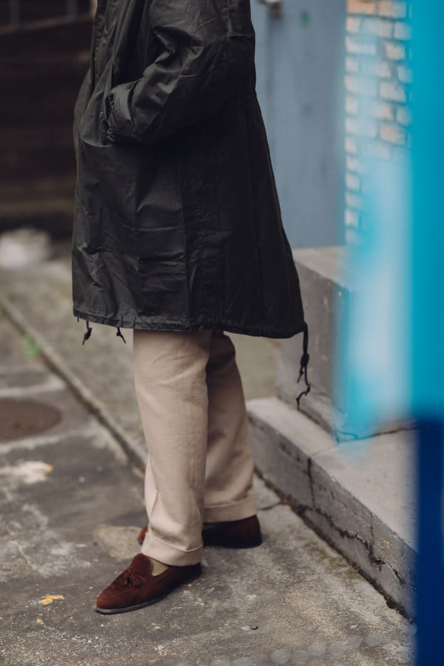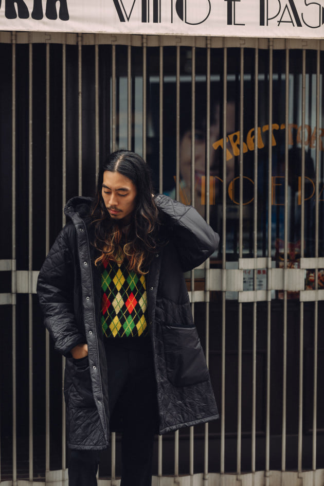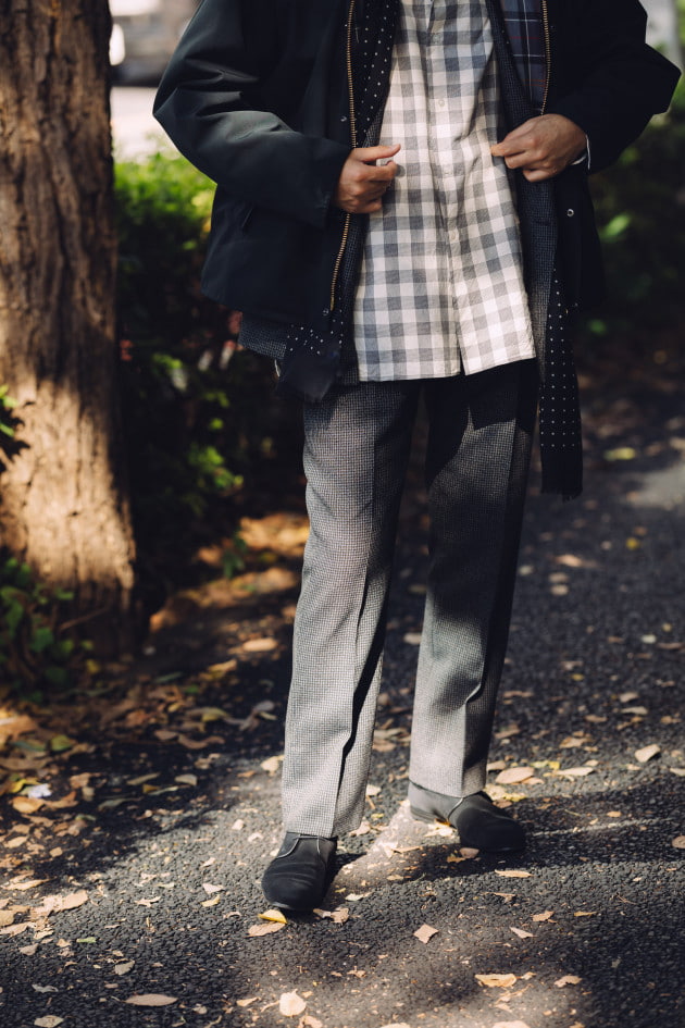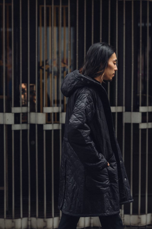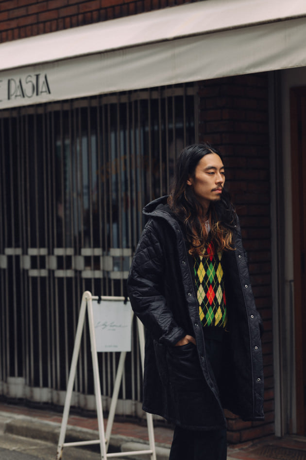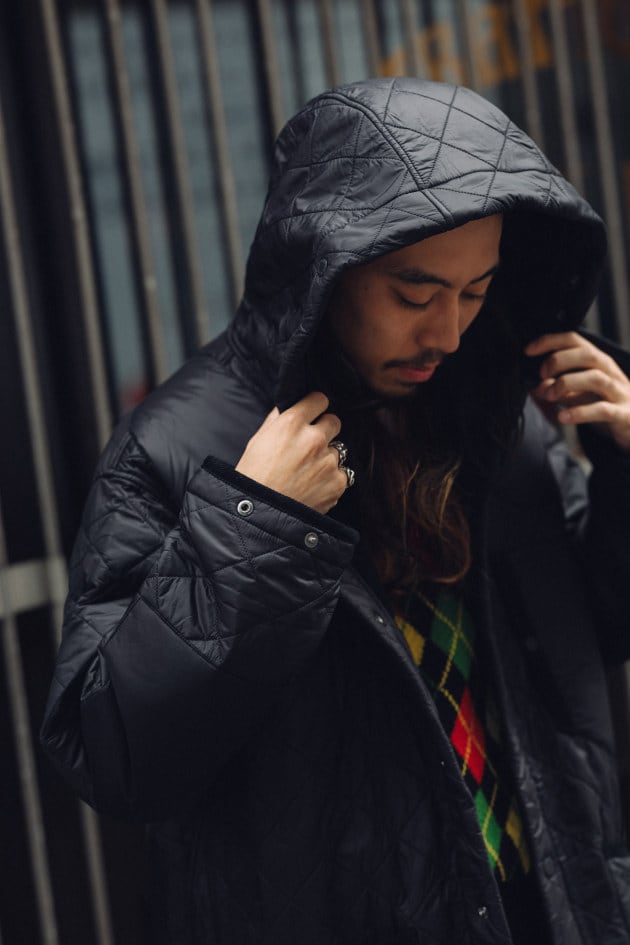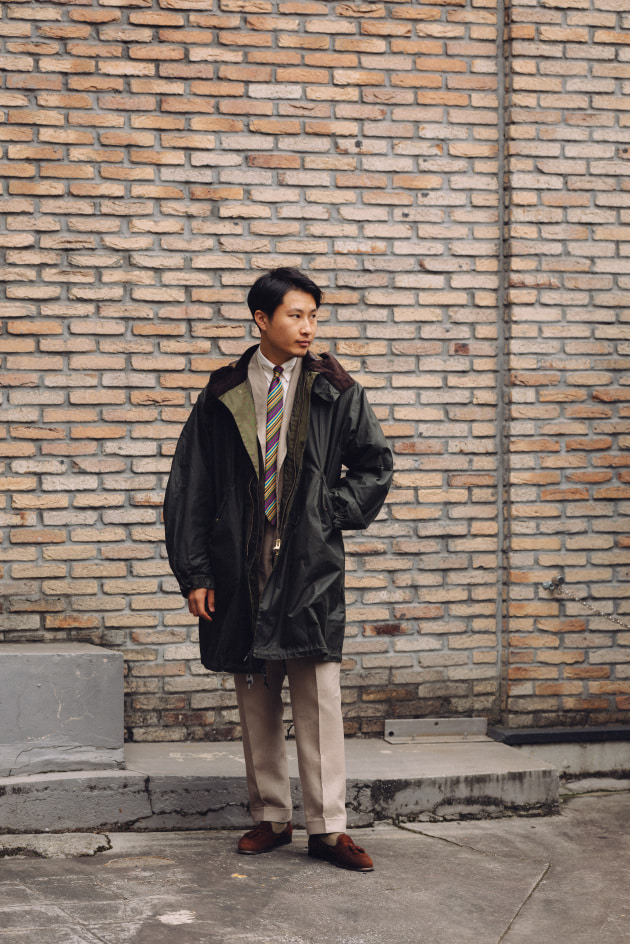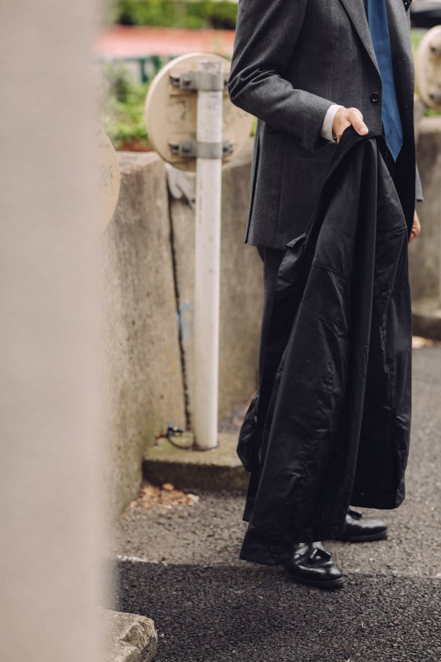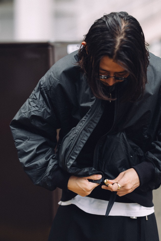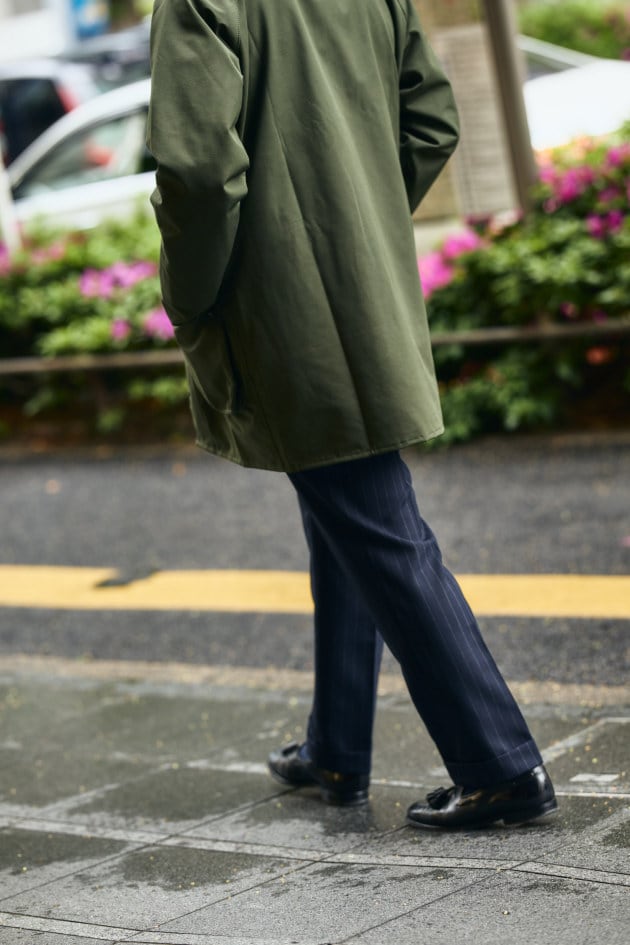 こちらは秋冬シーズンに展開していたアイテムですが、2レイヤーという機能的素材を使用しており、春秋にも問題なく着用可能です。特にこんな雨の日には頼り甲斐のある一着に。