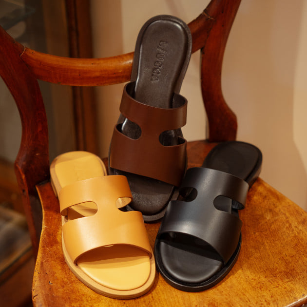 昨年から展開している〈L/UCCA〉のレザーサンダルです。