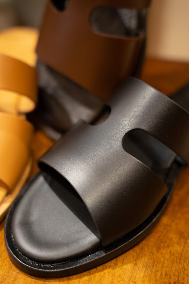 伝統的なMade in Italyを継承しつつも、女性のデザイナーによるユニセックスなバランスは、サンダルというカジュアル感の強いアイテムを大人の男性も履いていただける上品なアイテムに昇華しています。