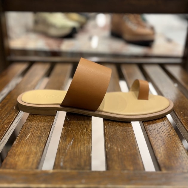 〈L/UCCA〉のサンダルはソールが薄く上品な表情ながら、