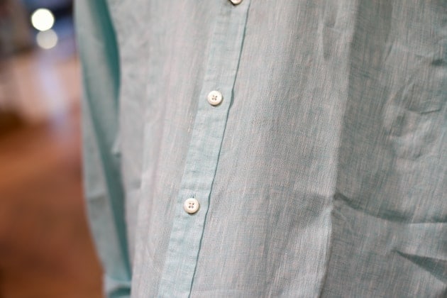 <ALBINI>の上質なリネン100%で作られているシャツはチクチク感は全くなく、滑らかな肌触り。肌着無しで一枚で着てもストレスになりません。