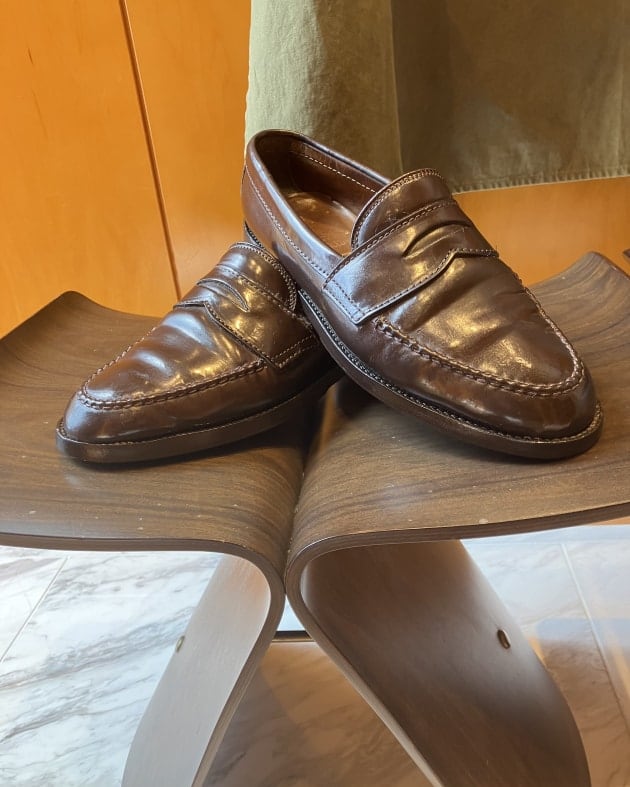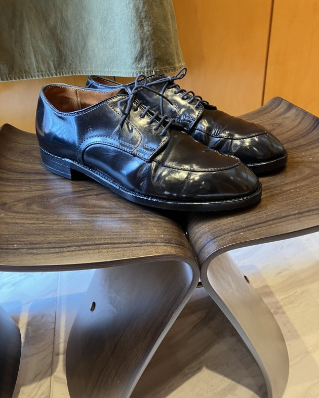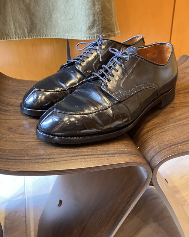 革の状態を確認、靴クリームを適度に塗り調整しました。